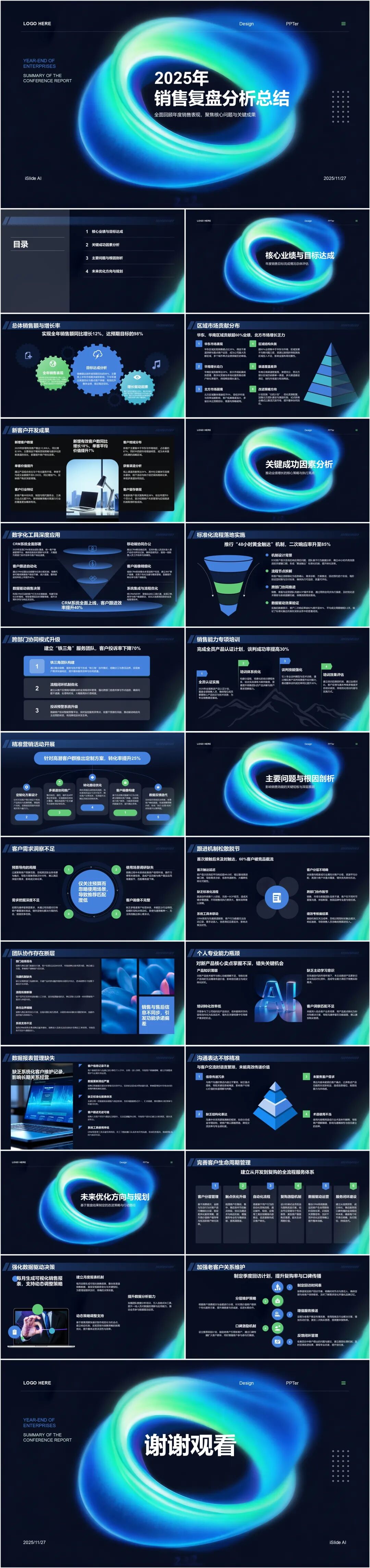 - 只需要输入文案或大纲(例如:“生成一份 2025 年销售复盘分析总结”)