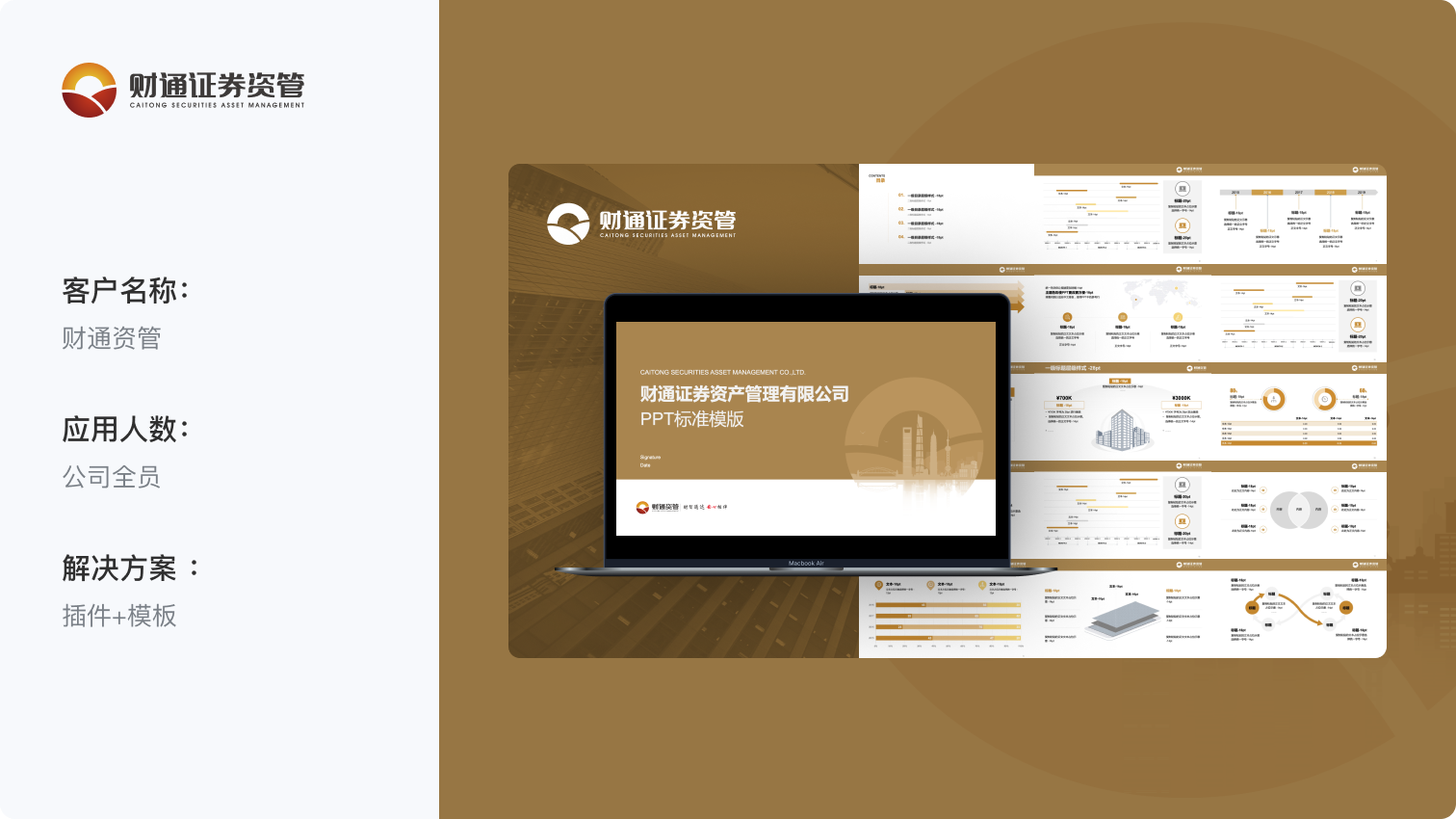通过iSlide主题模板定制服务,设计符合客户场景的PPT标准,并结合iSlide插件资源库功能,快速组合创建PPT文档。目前客户内部管理公司按照插件人数已达千人,实现PPT设计效率和专业性的双重提升。