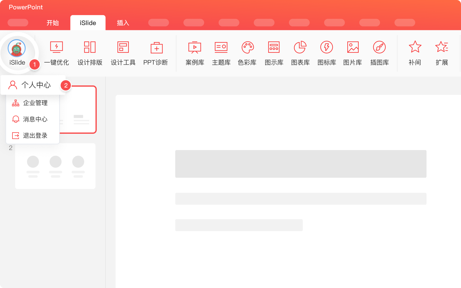 ・ Windows 下 WPS 的PPT演示/ 文字中菜单栏未显示 iSlide