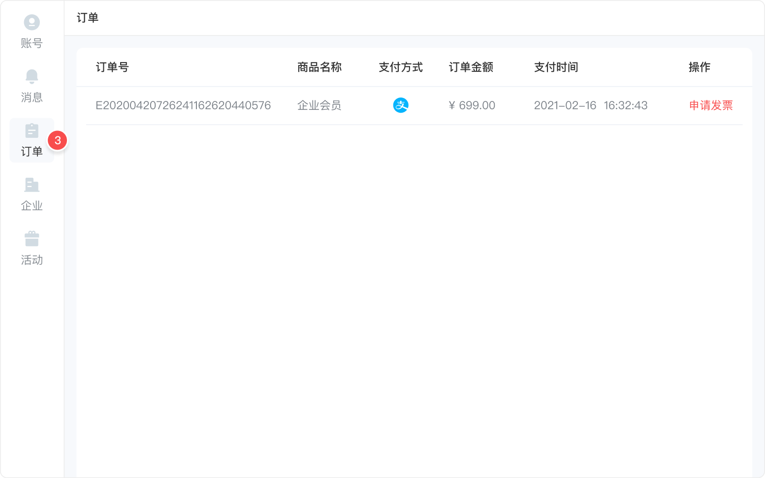 点击个人中心» 订单即可看见此账号购买的订单详情