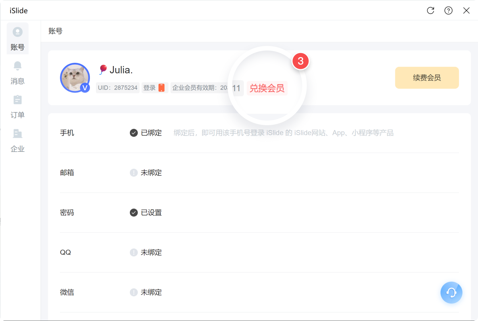 重要提示:iSlide 会员权益与账号绑定,多个产品端会员权益共享。即同一账号无论在电脑端还是移动端登录,均能获得相应的 iSlide 会员权益。