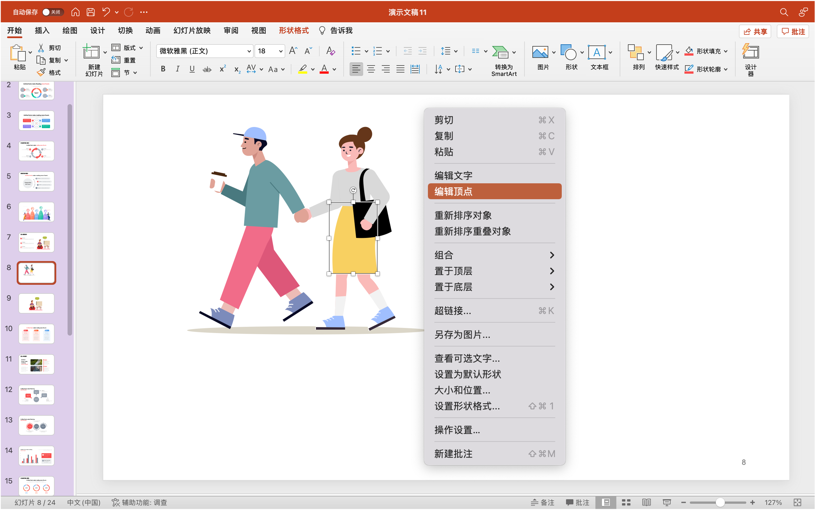 ● 取消组合后,可以自定义设置填充颜色、线条颜色、编辑顶点等