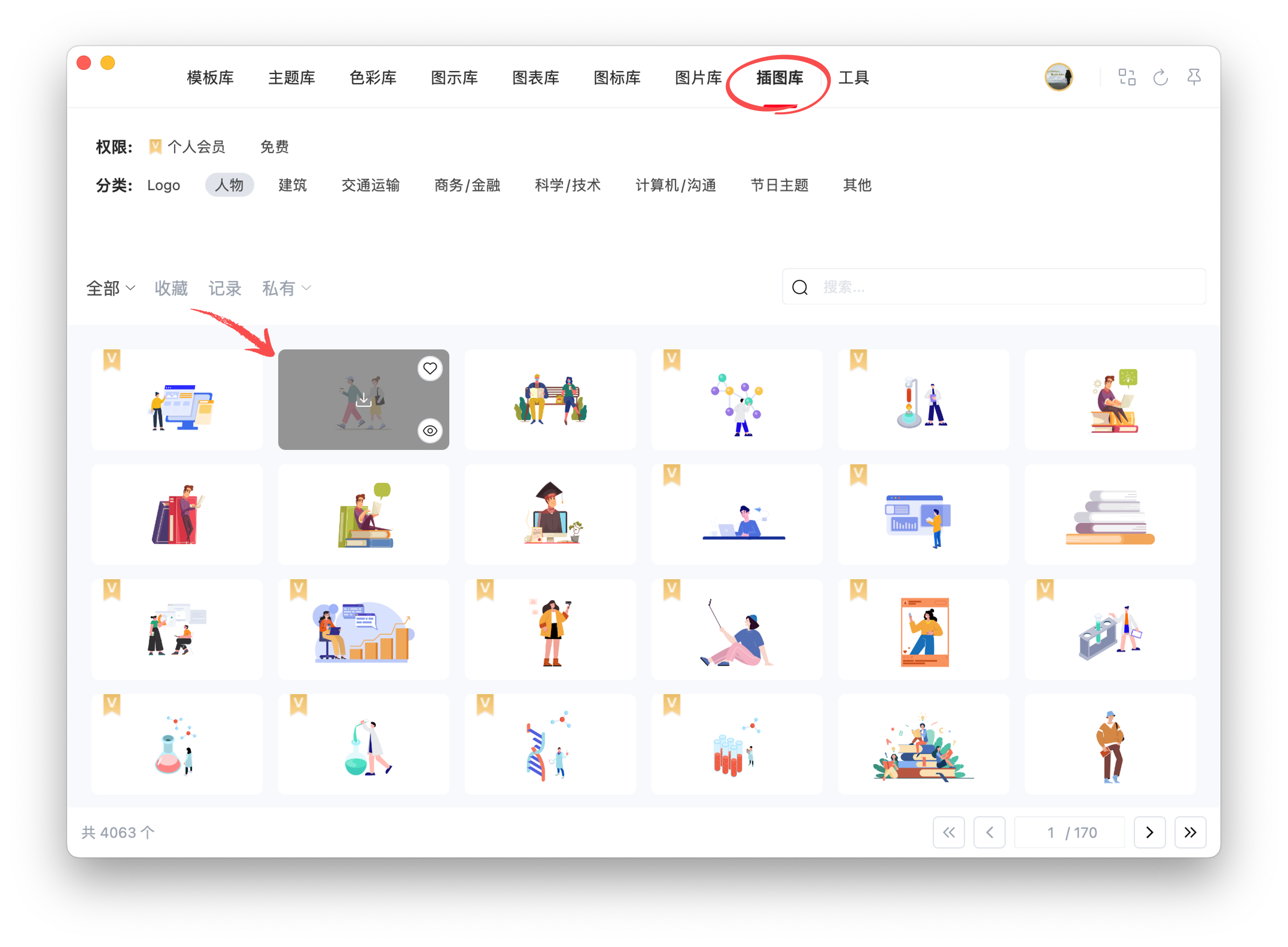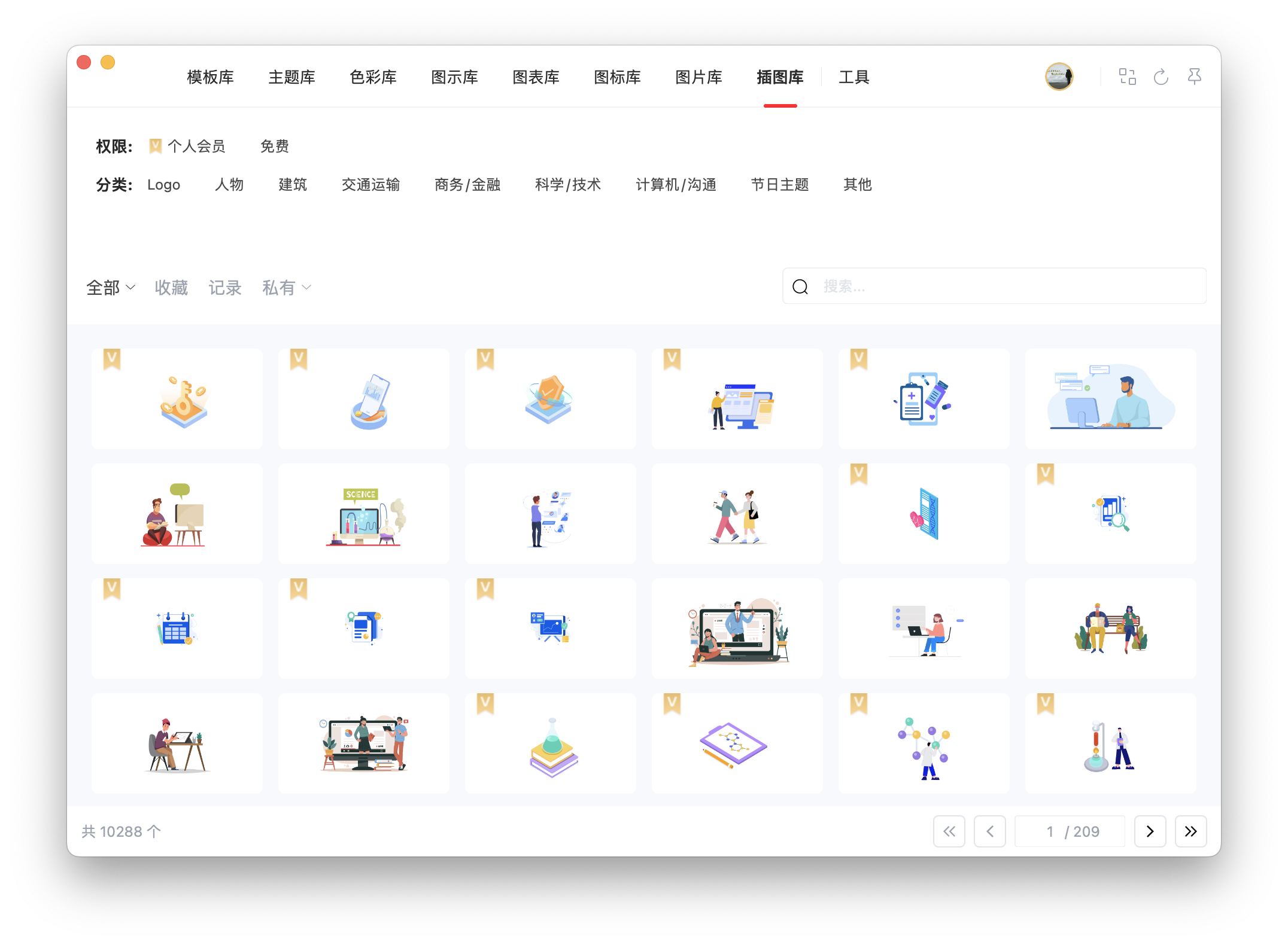 记录:下载记录中可快速查找近期下载使用过的所有插图。