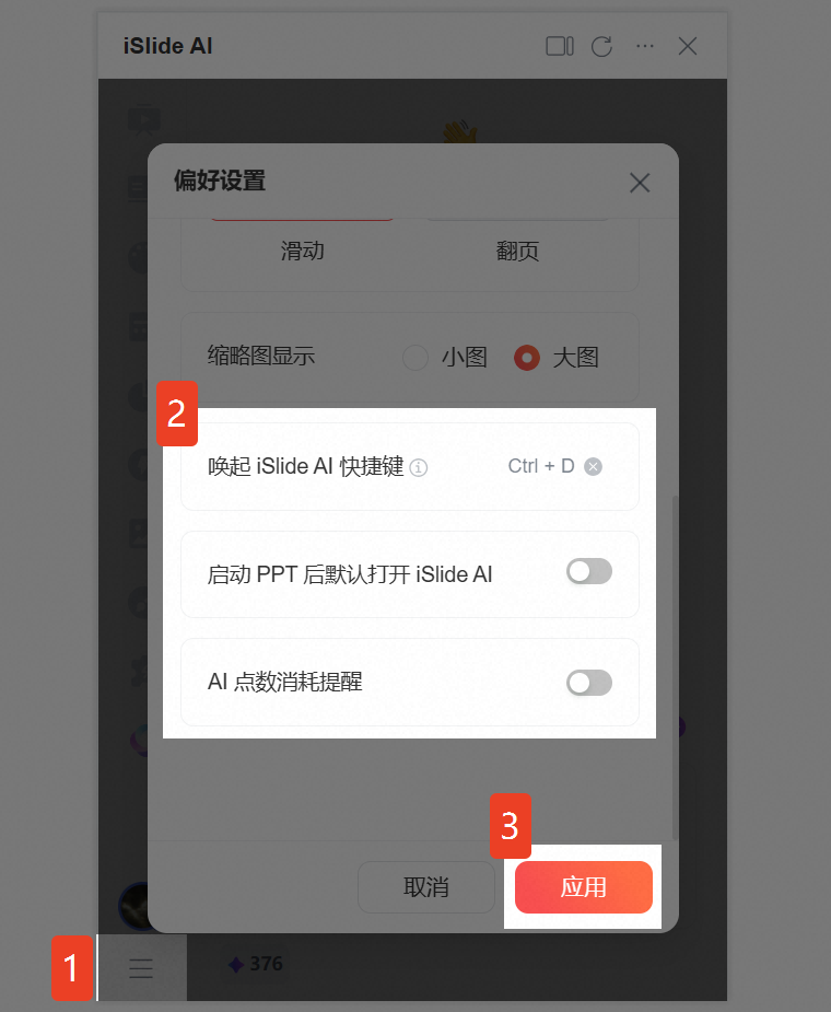 ⦁ 唤起iSlide AI快捷键(需使用Ctrl/Shift与数字/字母组合)