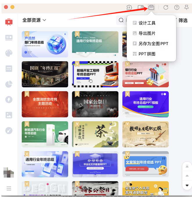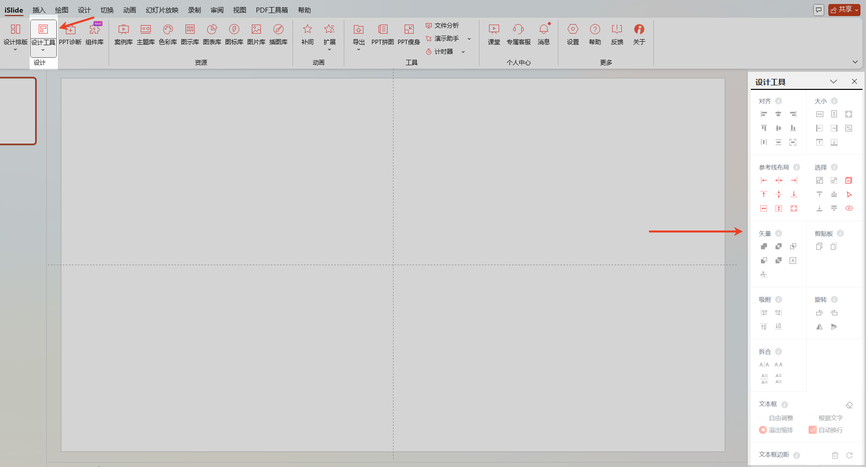 - 在 iSlide 选项卡下,点击【设计工具】图标。