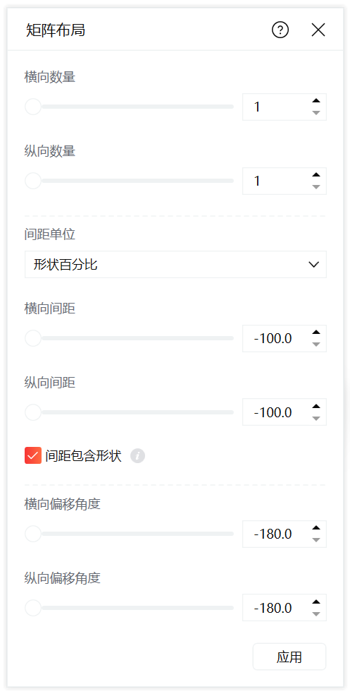 - 启动矩阵布局功能,在布局设置界面,找到【间距包含形状】选项并勾选。
