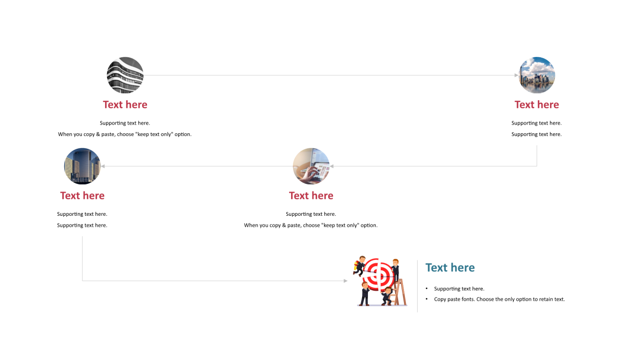 多色圆形扁平5项PPT关系