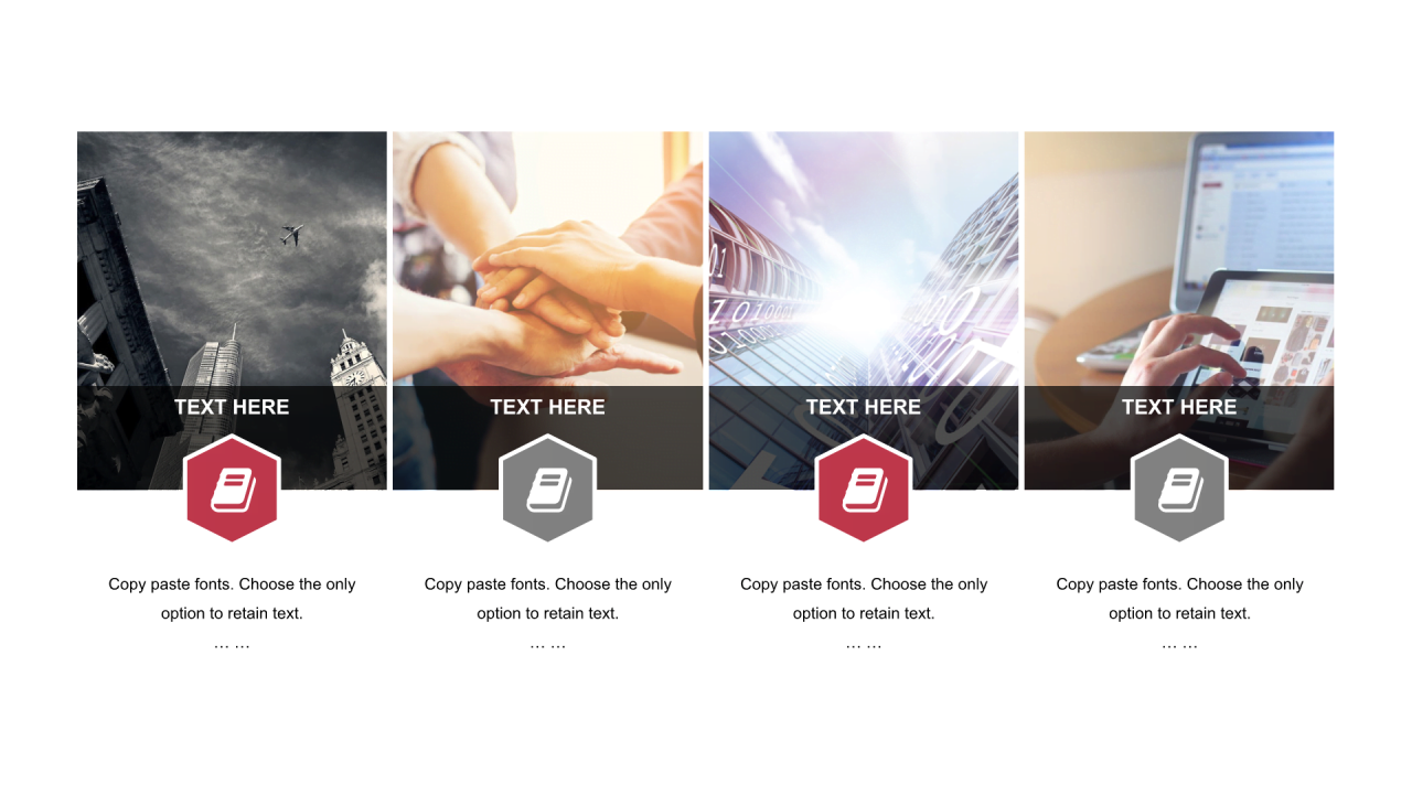 红色六边形扁平4项PPT列表