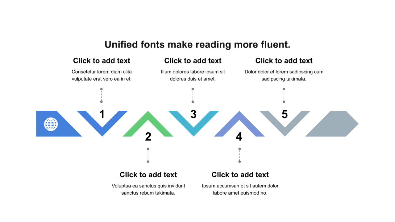 多色三角形扁平5项PPT流程