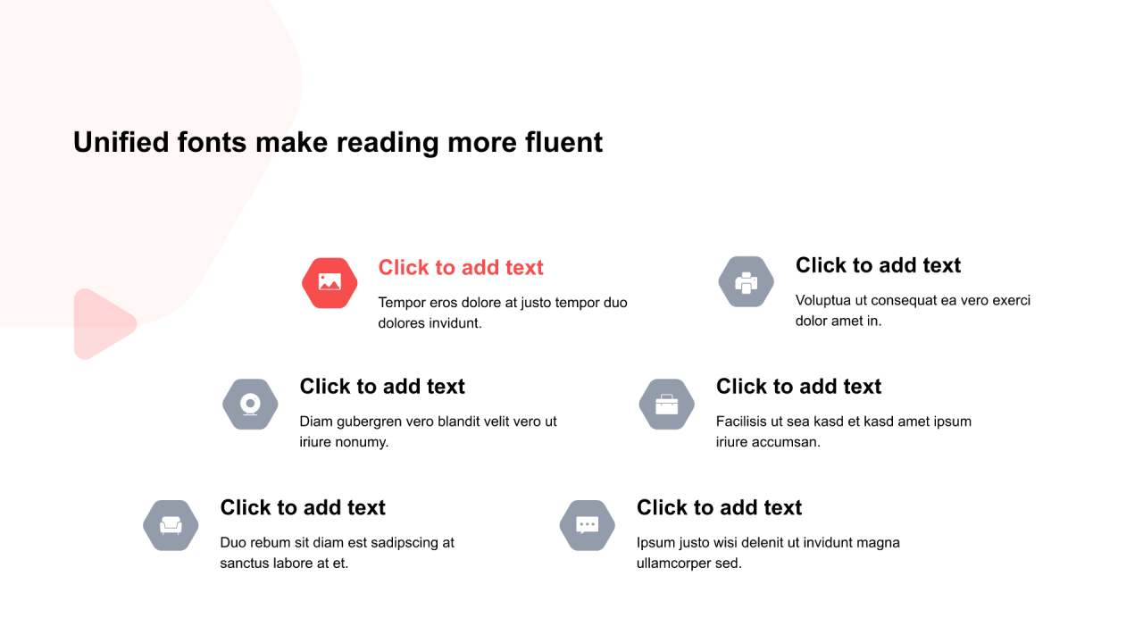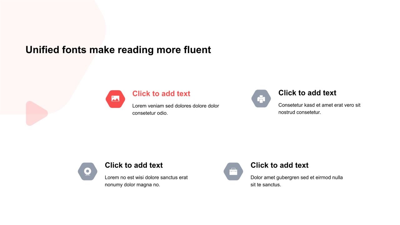 红色六边形扁平4项PPT列表