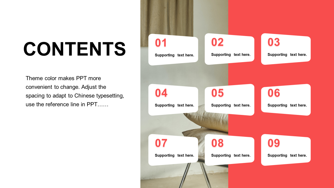红色扁平3项PPT目录