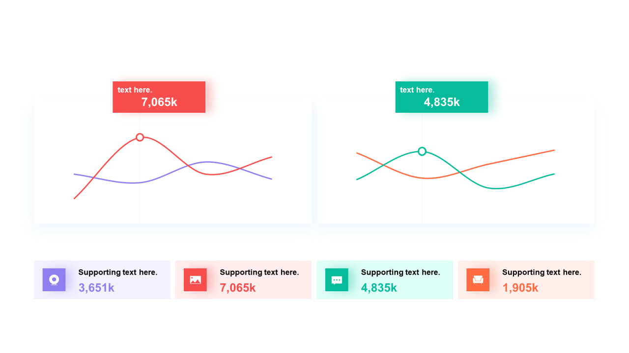 多色扁平PPT折线图