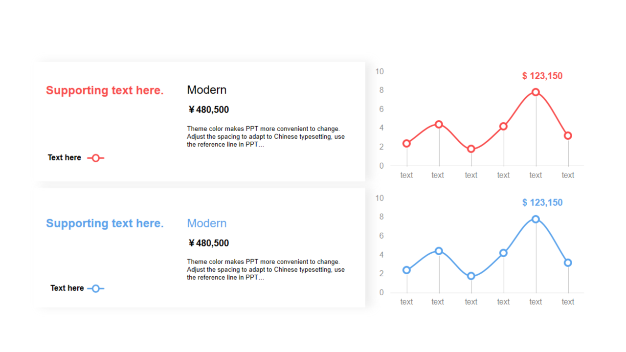 多色扁平PPT折线图