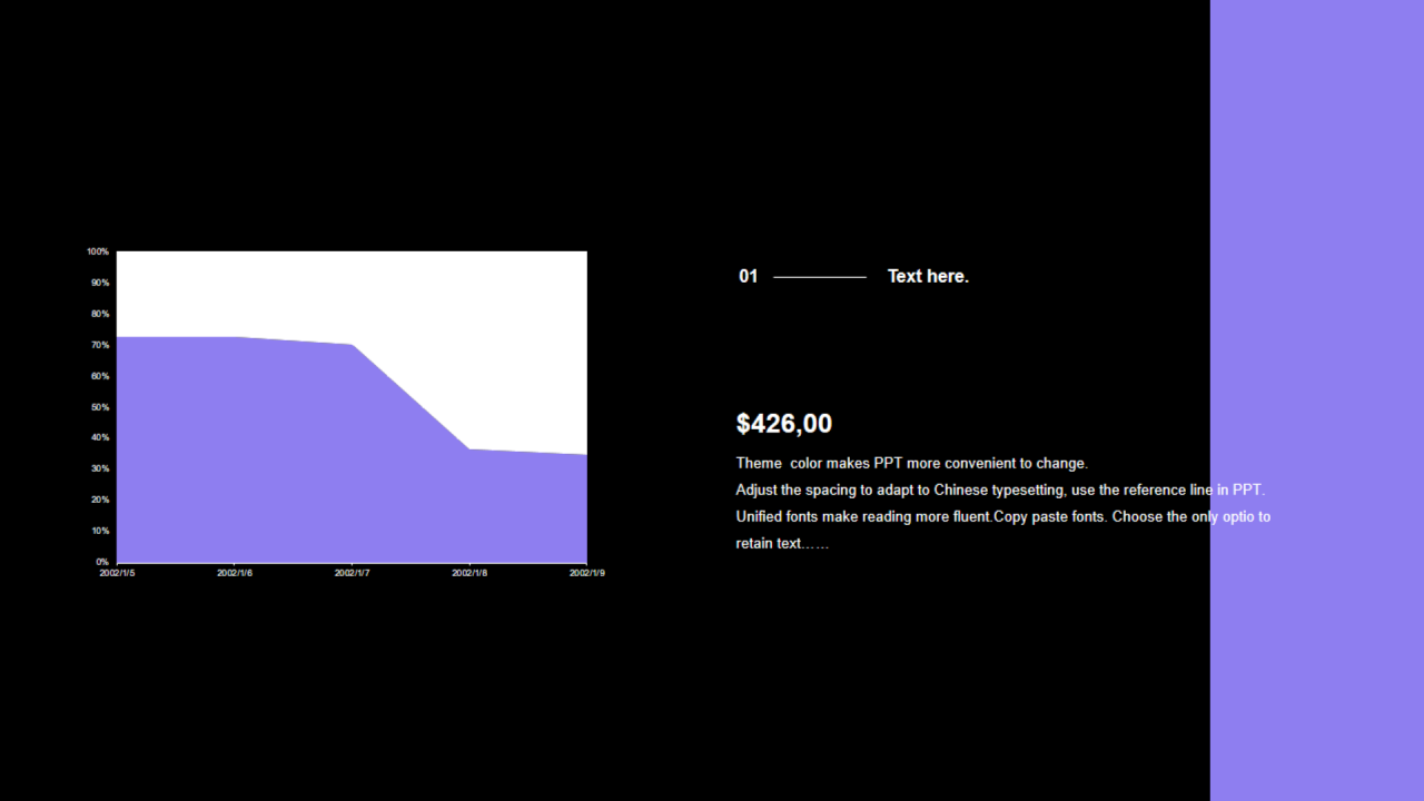 紫色扁平PPT面积图