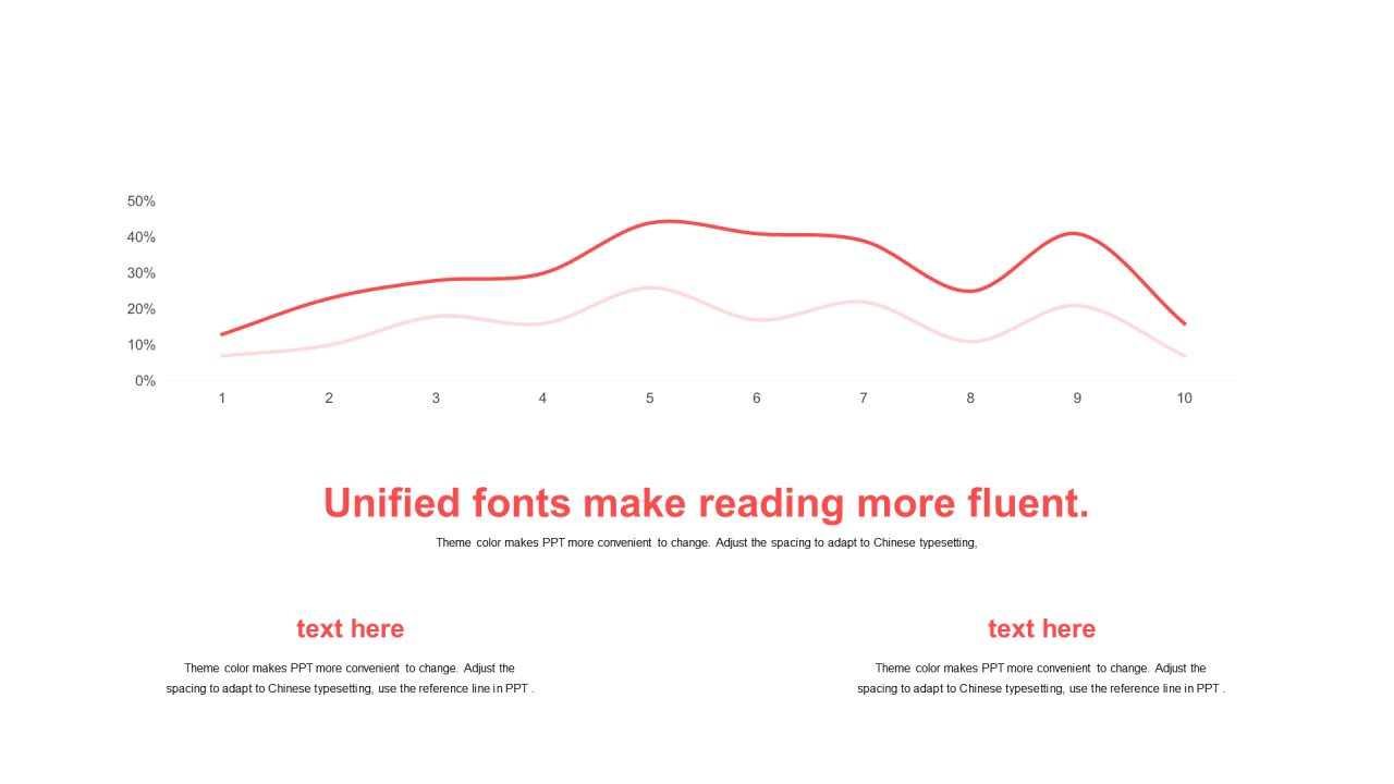 红色扁平PPT折线图
