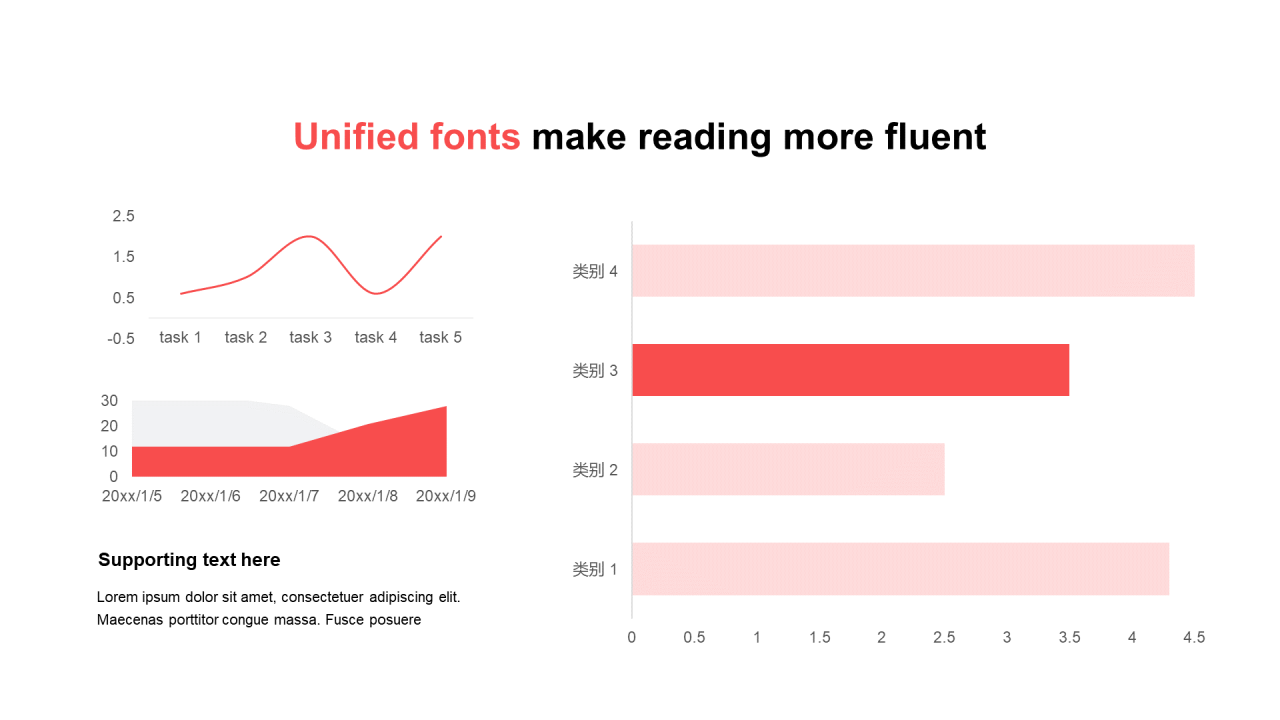 单色扁平PPT条形图、面积图