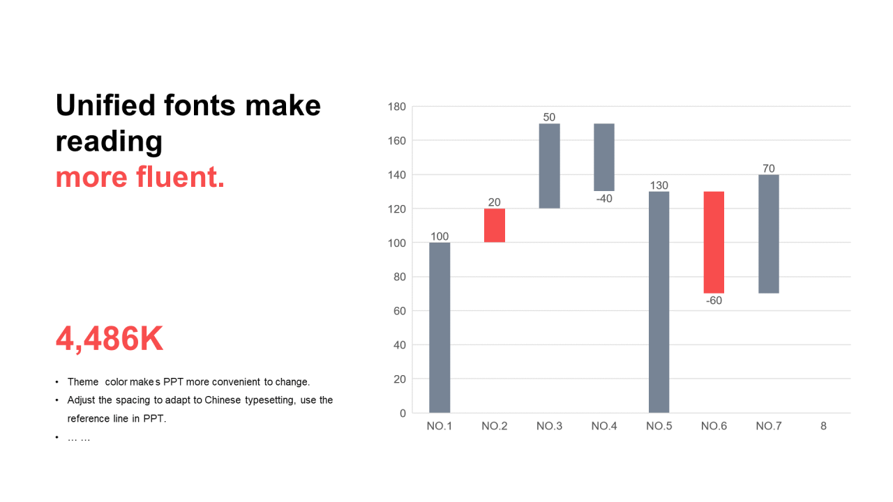 单色扁平PPT瀑布图