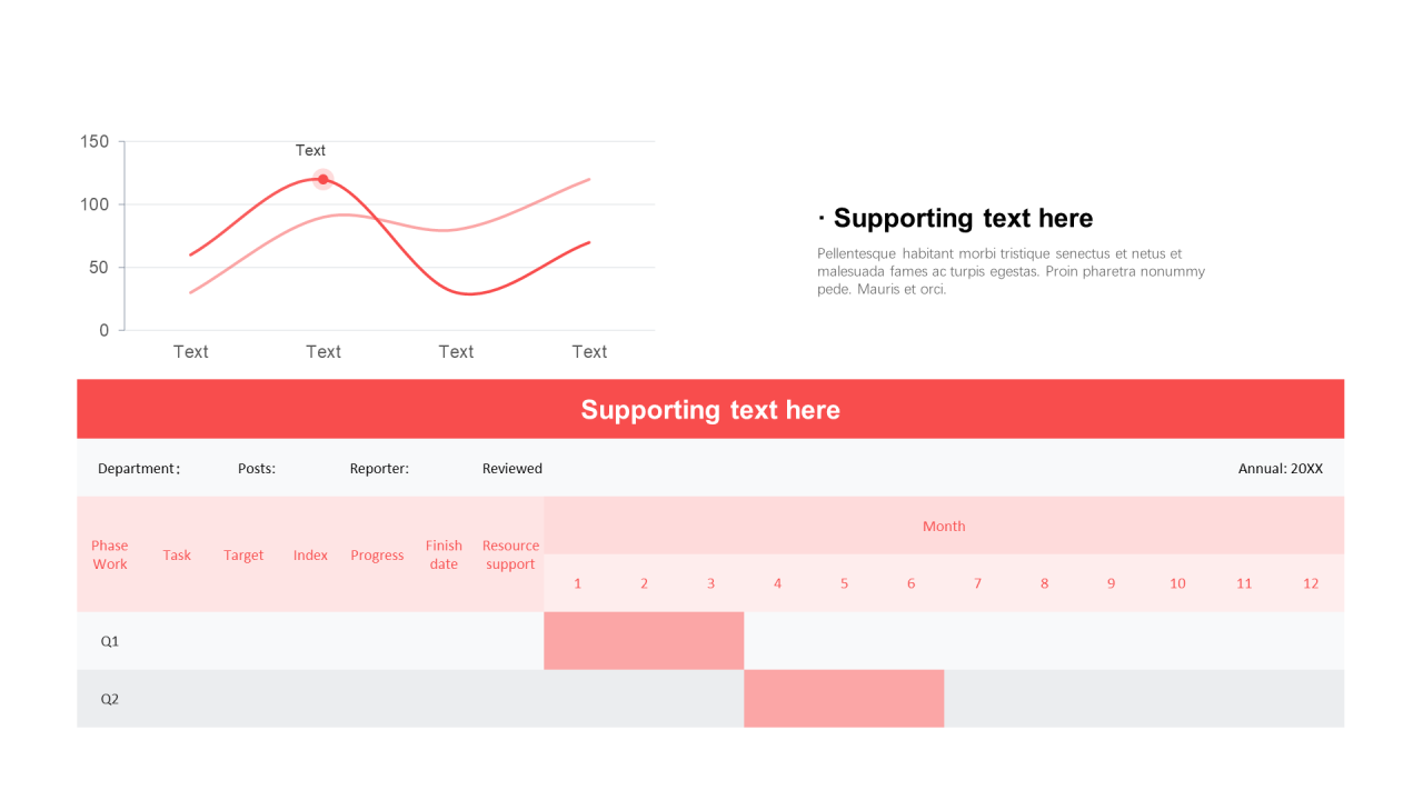 单色扁平PPT表格、折线图