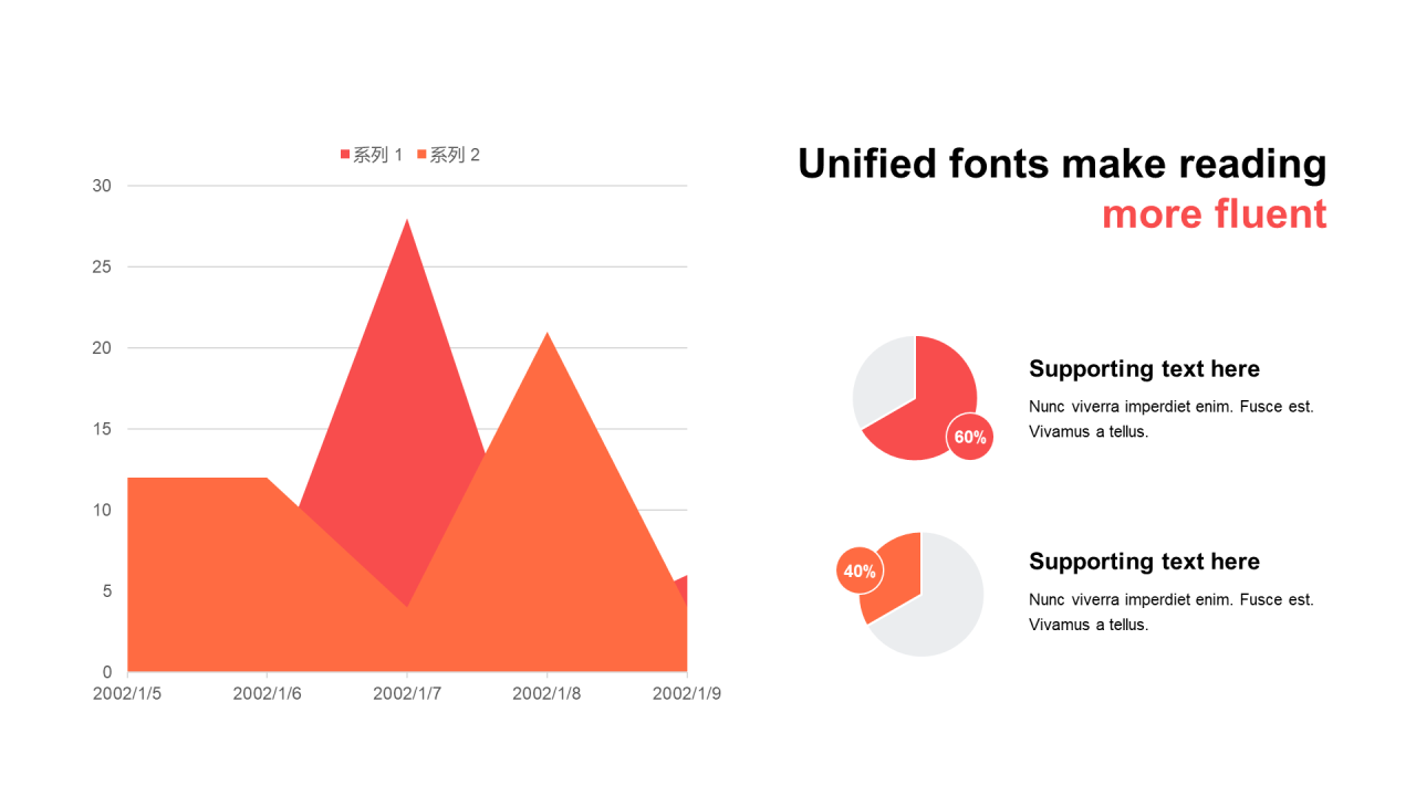 扁平PPT面积图,饼图