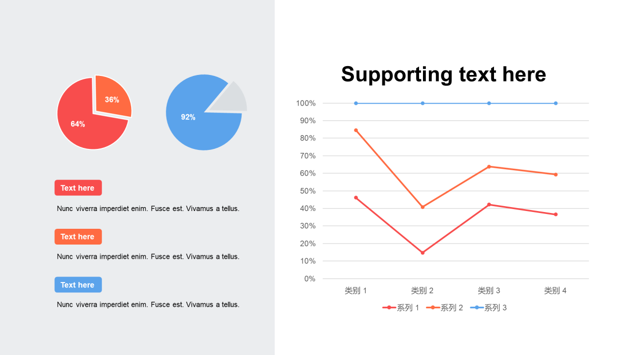 扁平PPT折线图,饼图