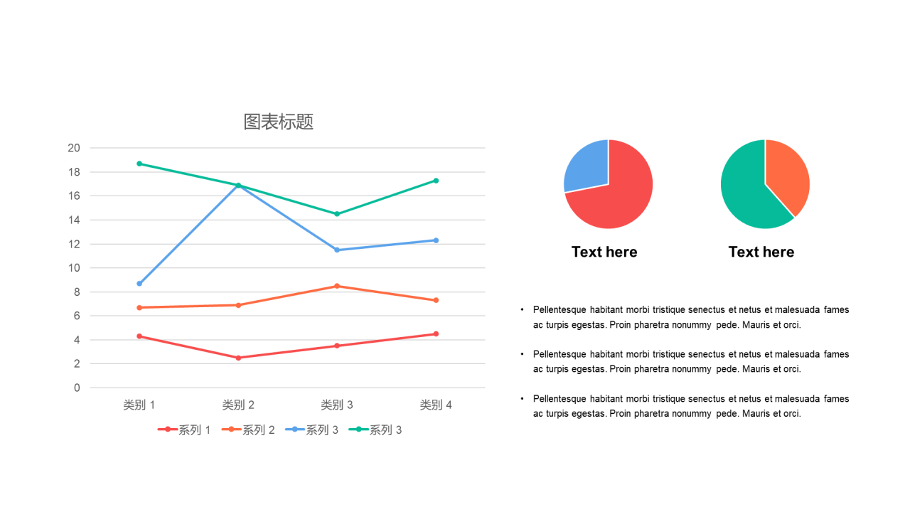 扁平PPT折线图,饼图