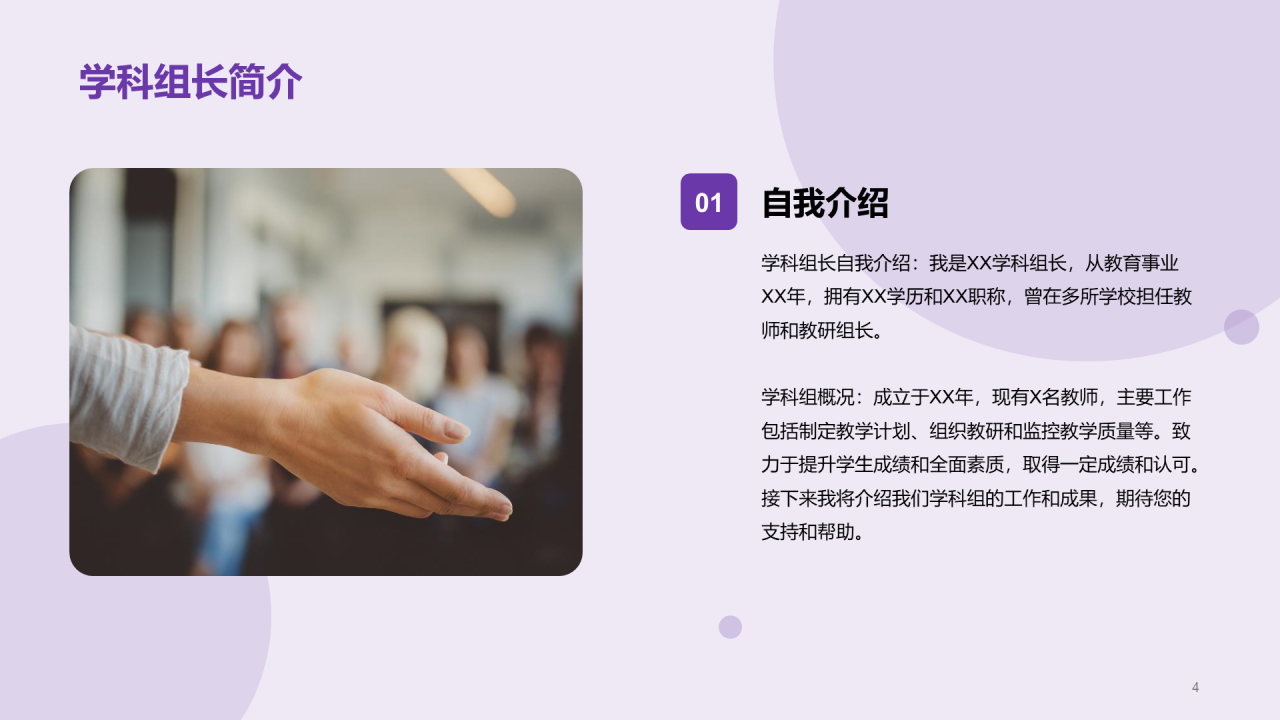 紫色现代商务学科组长竞聘述职报告PPT模板