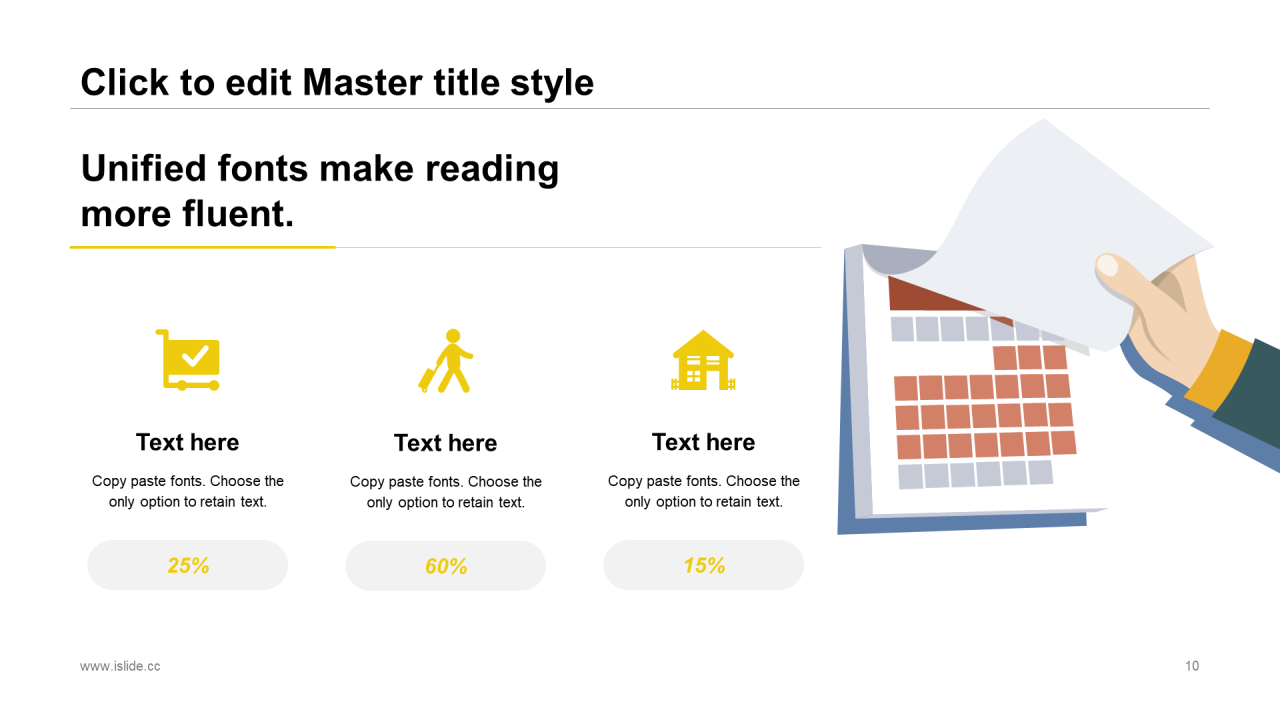 当前模板由 iSlide 团队原创设计或已获得相关权利人授权,PPT 格式案例、模板(含预览图)受著作权法保护,著作权及相关权利归本平台所有。下载使用需遵循版权声明条款,禁止任何形式的转让、出售或出租,未经投权许可任何人不得擅自转载和分发,否则将接照我国著作权法的相关规定承担相应法律责任。