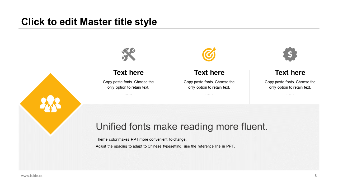 当前模板由 iSlide 团队原创设计或已获得相关权利人授权,PPT 格式案例、模板(含预览图)受著作权法保护,著作权及相关权利归本平台所有。下载使用需遵循版权声明条款,禁止任何形式的转让、出售或出租,未经投权许可任何人不得擅自转载和分发,否则将接照我国著作权法的相关规定承担相应法律责任。
