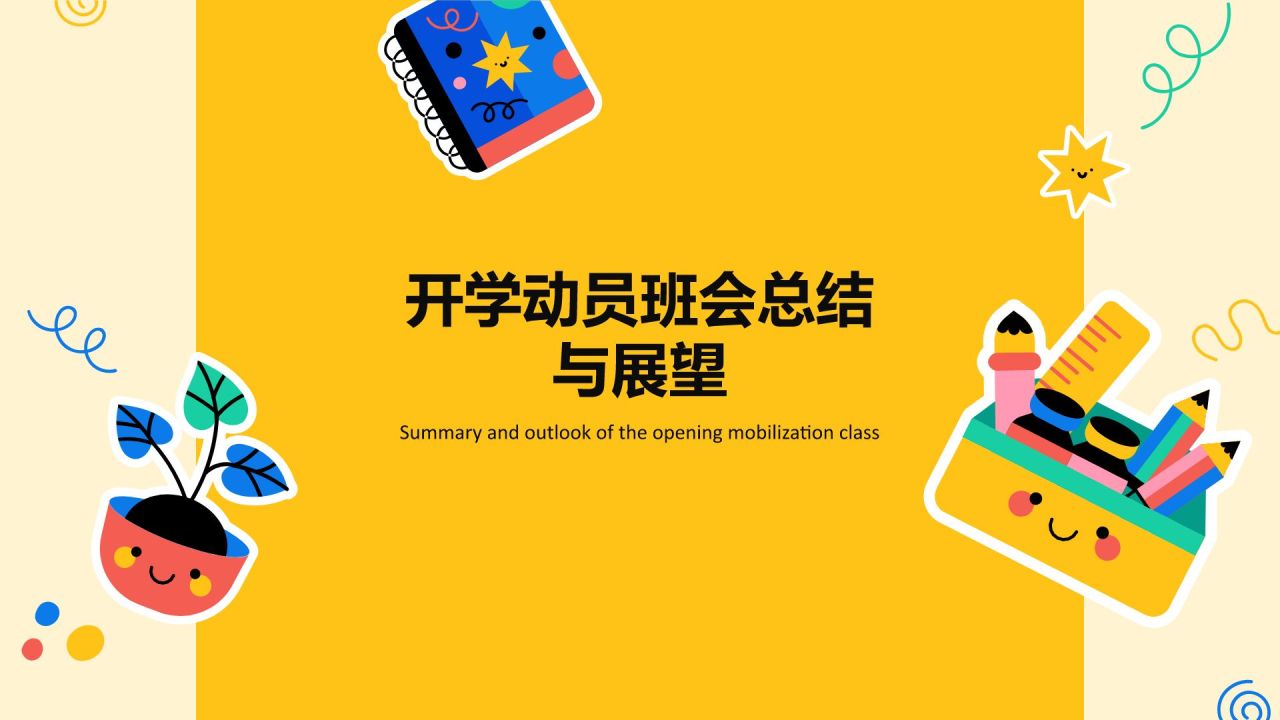 橙色插画风开学动员班会PPT模板
