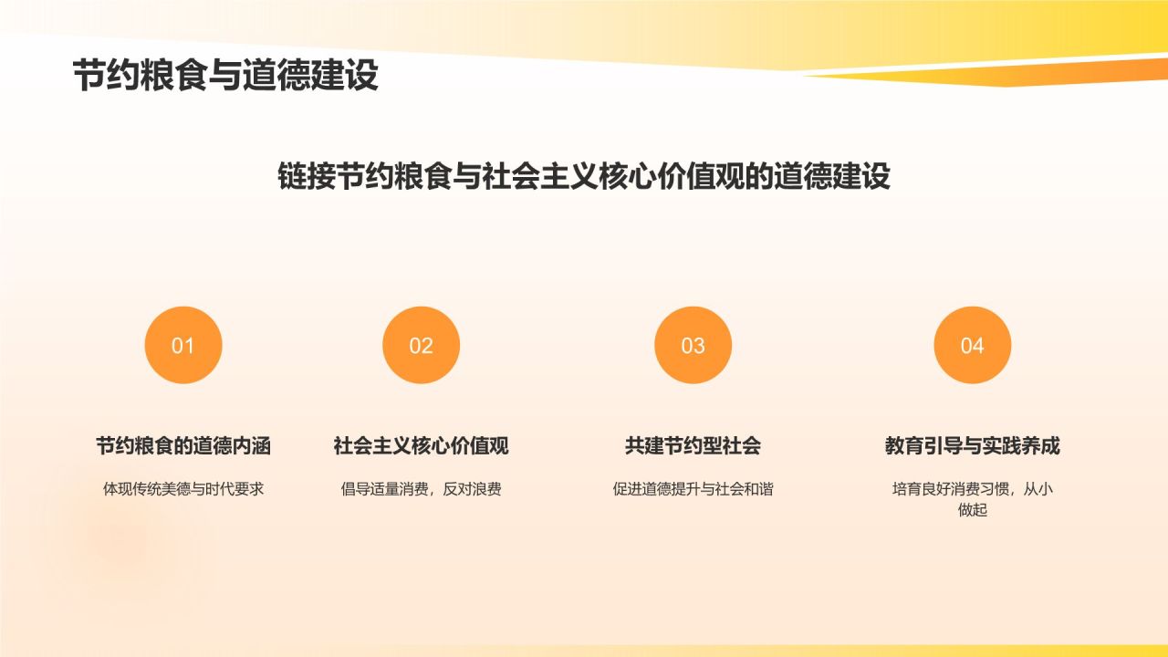 节约粮食,反对浪费,是我们每个人应尽的责任。通过合理消费、科学储存、提倡节俭生活方式,共同维护粮食资源可持续利用,体现了社会主义核心价值观中的勤劳节约美德。
