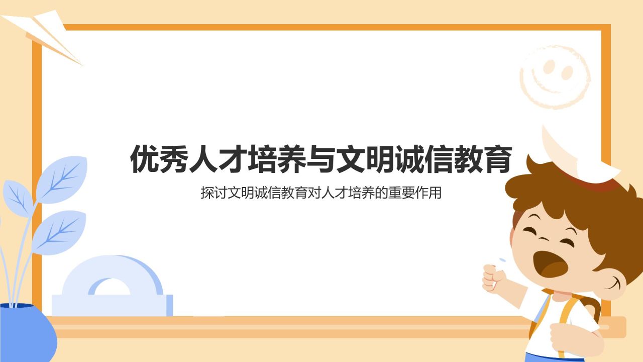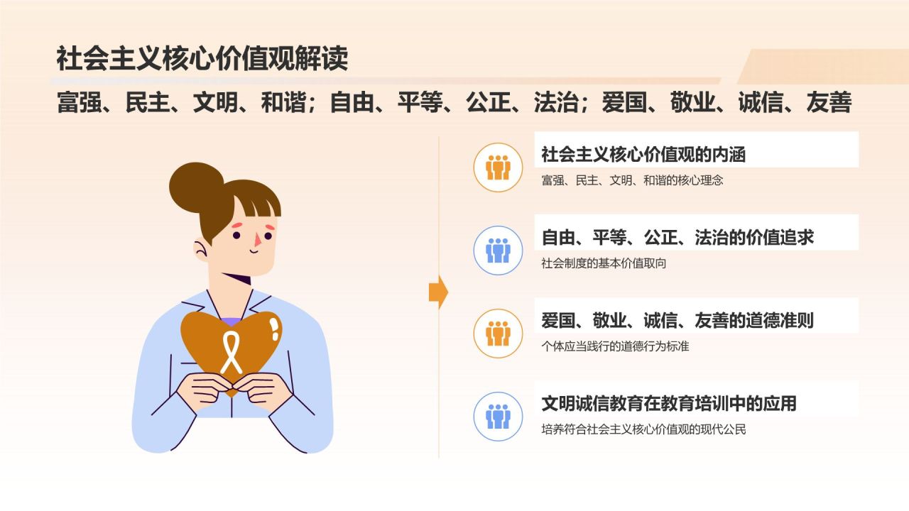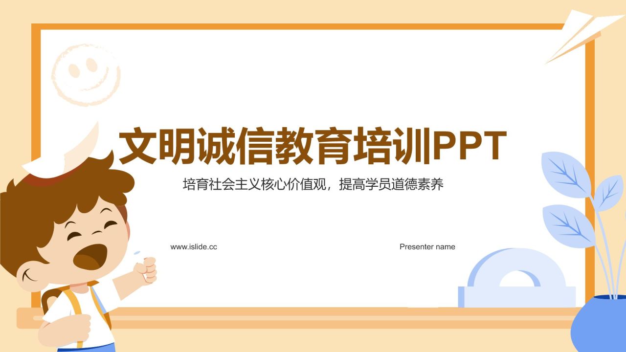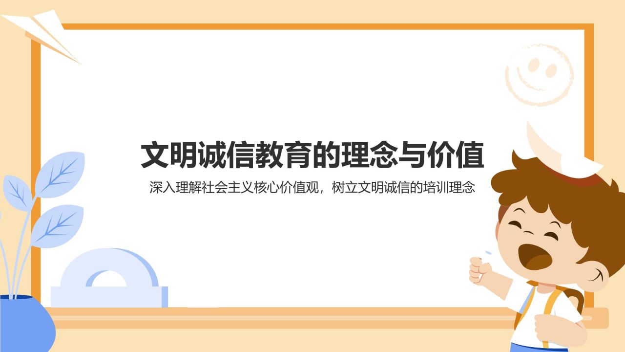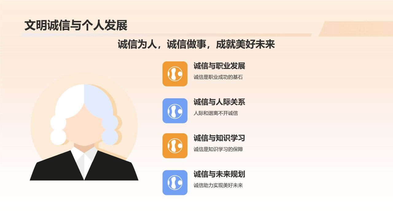 橙色插画风文明诚信教育PPT模板