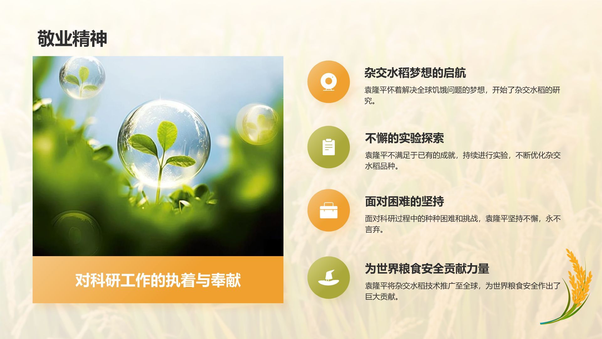 橙色插画风人物事迹介绍——袁隆平PPT模板