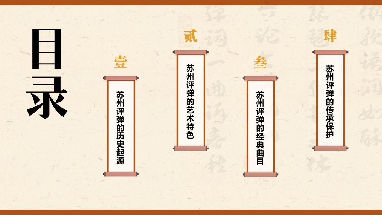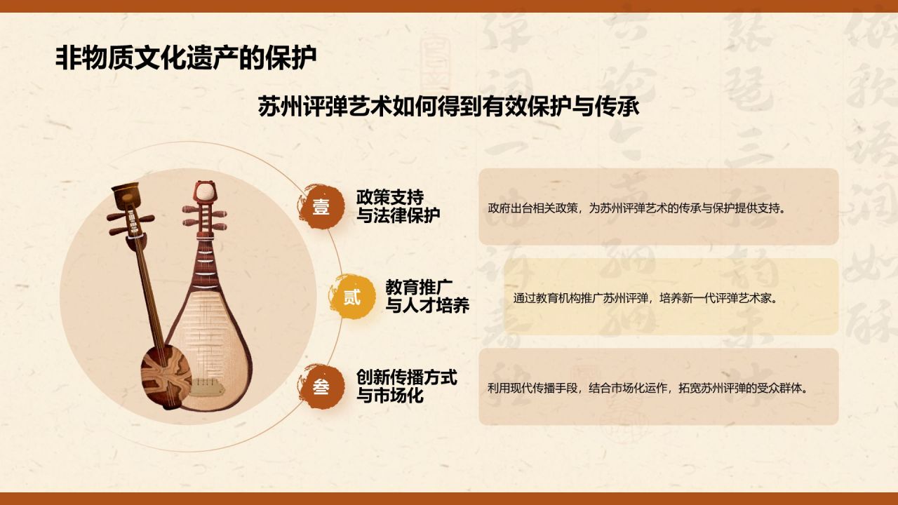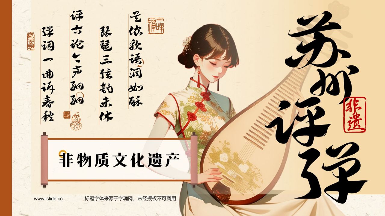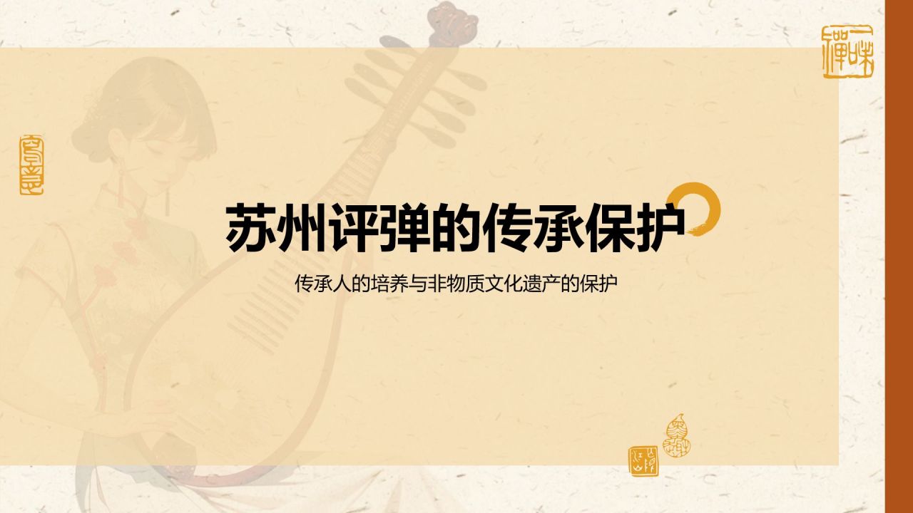 橙色复古风非遗文化介绍——苏州评弹PPT模板