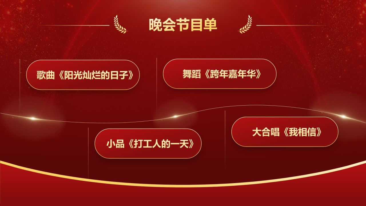 企业年会创意活动内容包括领导致辞、领导致辞、歌舞表演、旨在为通用行业年会庆典打造精彩纷呈的体验,通过创新互动,激发员工潜能,展现企业风采。