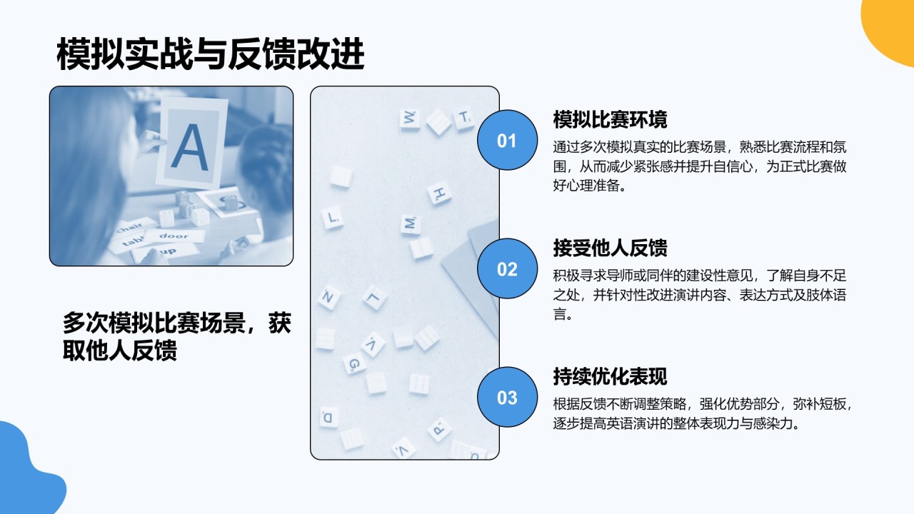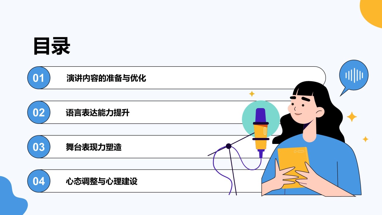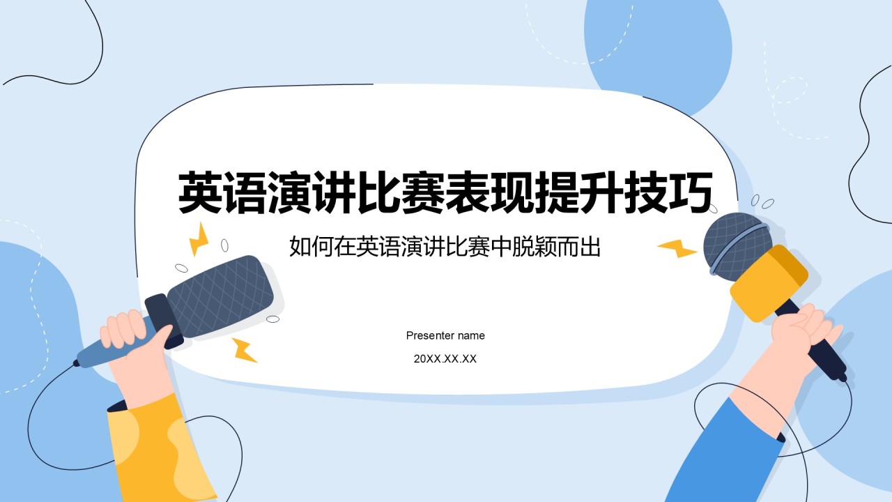 蓝色卡通风英语演讲比赛表现提升技巧PPT模板