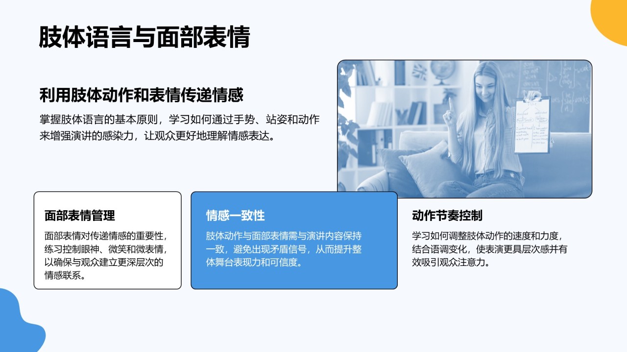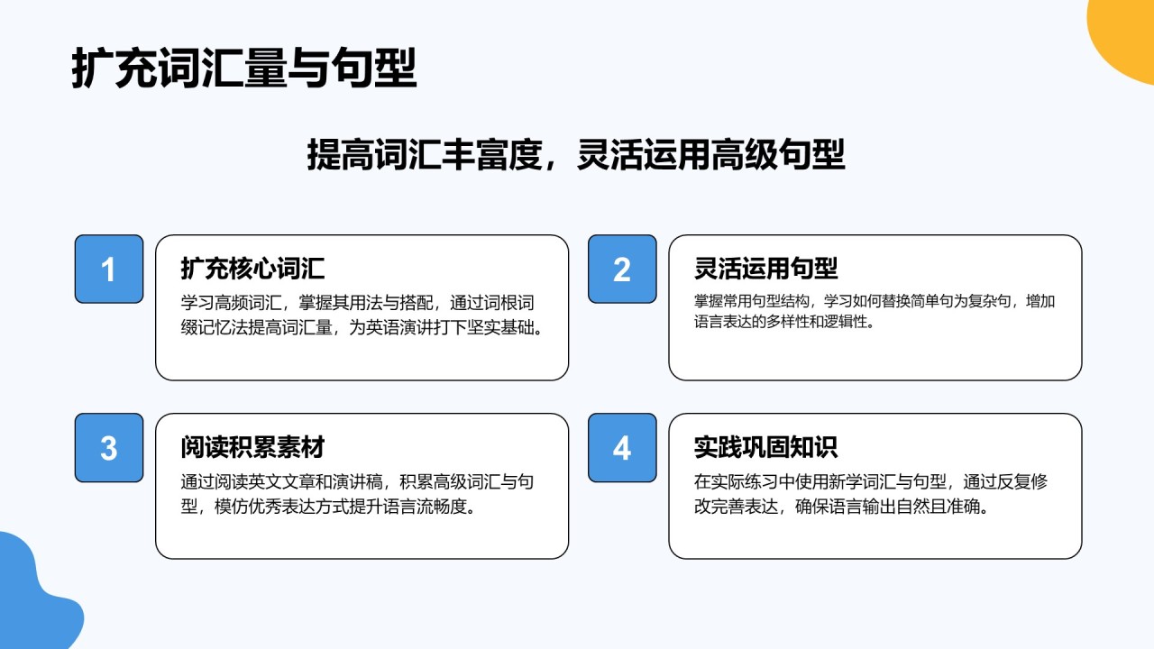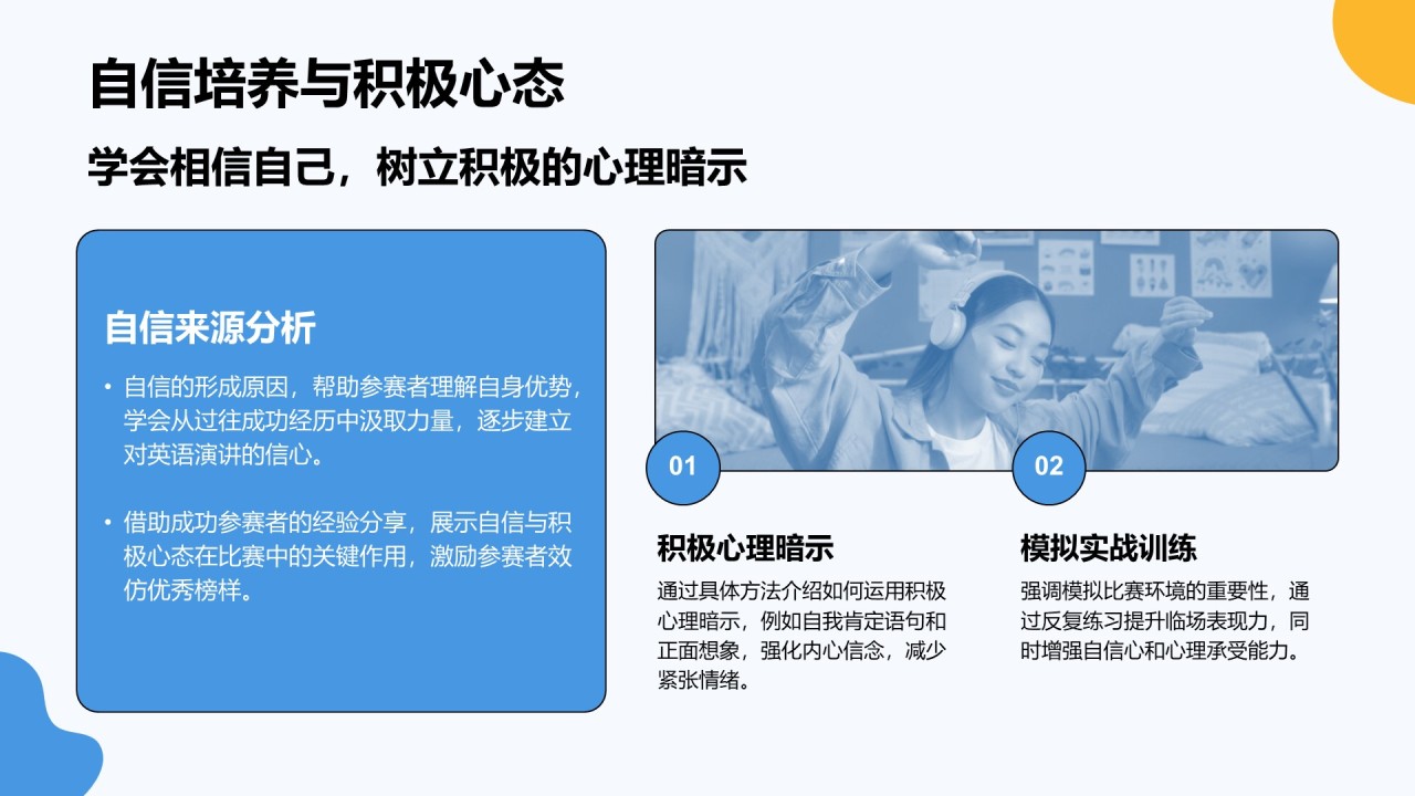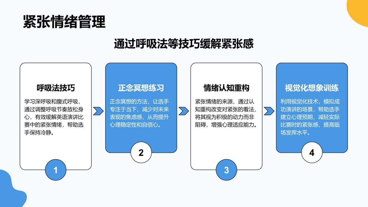 蓝色卡通风英语演讲比赛表现提升技巧PPT模板