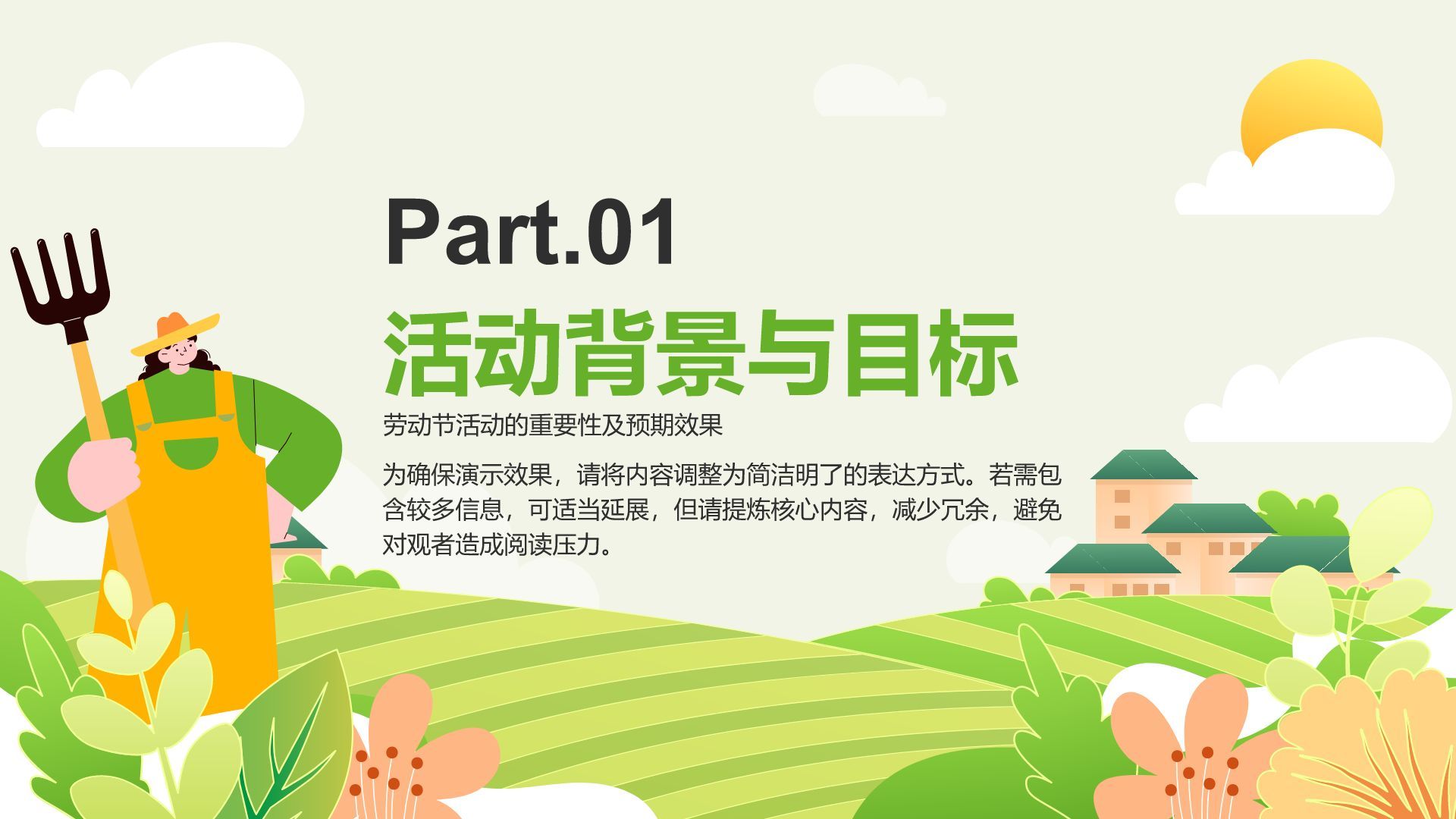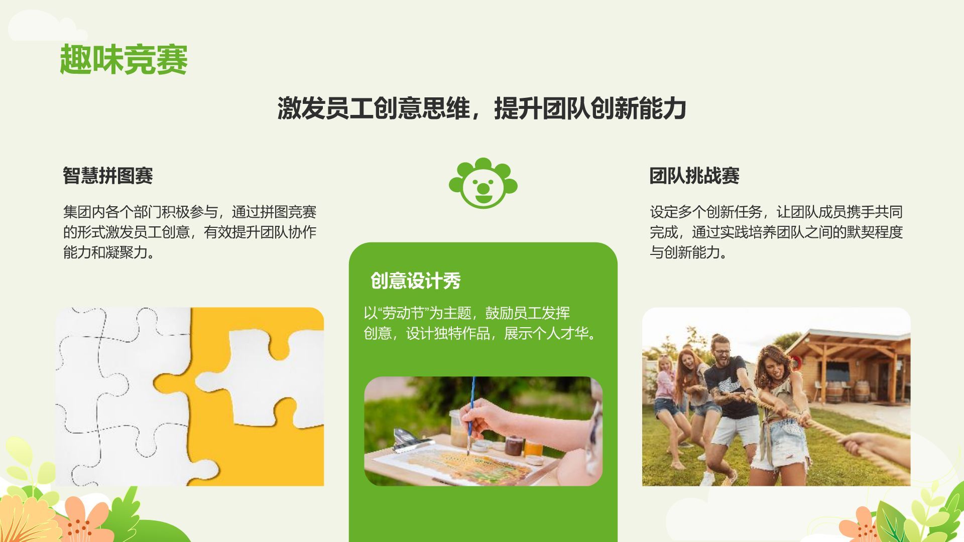 劳动节活动策划,旨在丰富员工文化生活,提升团队凝聚力。活动内容丰富多样,涵盖趣味竞赛、团队建设等,营造欢乐、和谐的工作氛围。