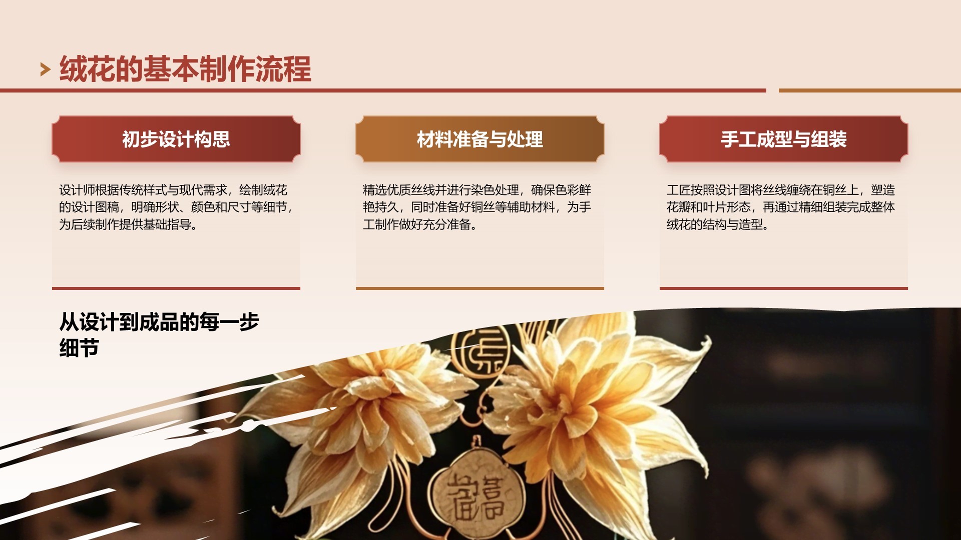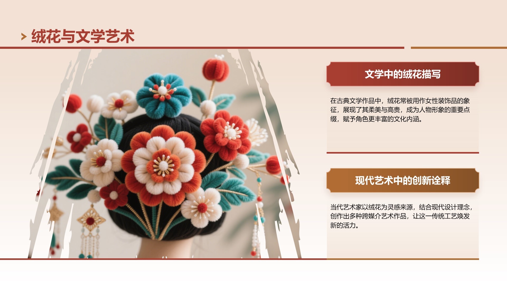 红色中国风非遗绒花的工艺魅力PPT模板