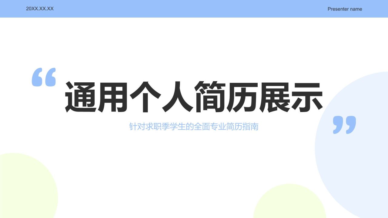 蓝色简约风通用个人简历展示PPT模板