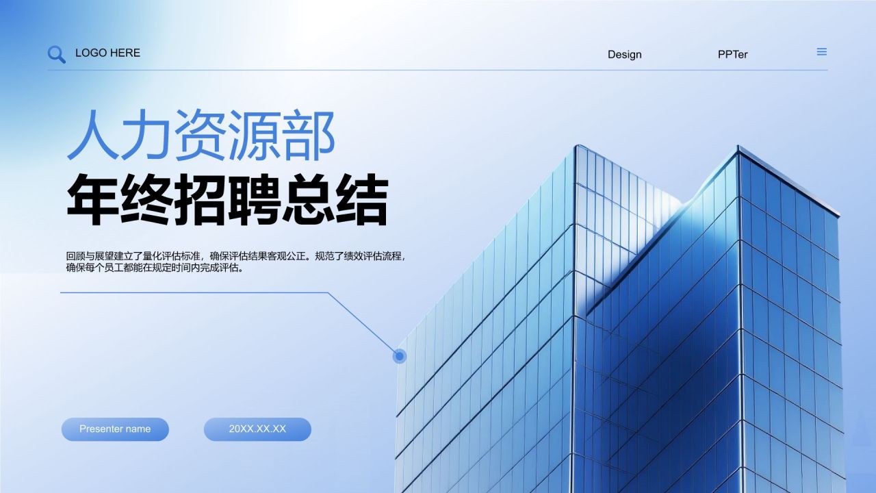 蓝色卡通风人力资源部年终绩效与招聘总结PPT模板