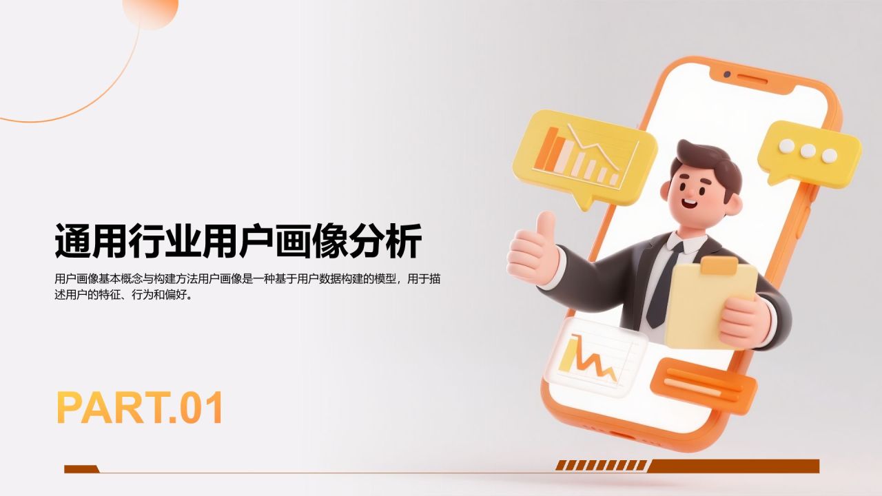 橙色3D风用户画像分析与行为模式研究PPT模板