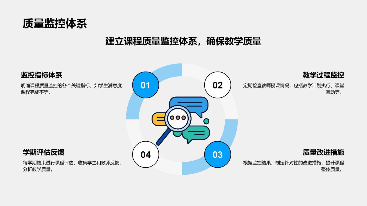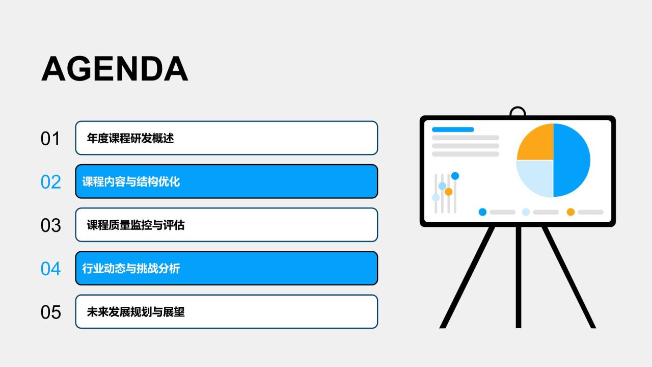 蓝色插画风教研部年度课程研发与质量总结汇报PPT模板