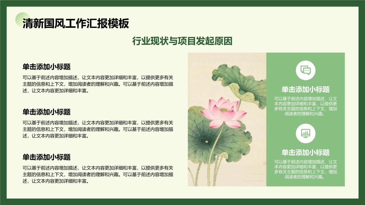 绿色国潮风诗酒花茶清新国风PPT模板