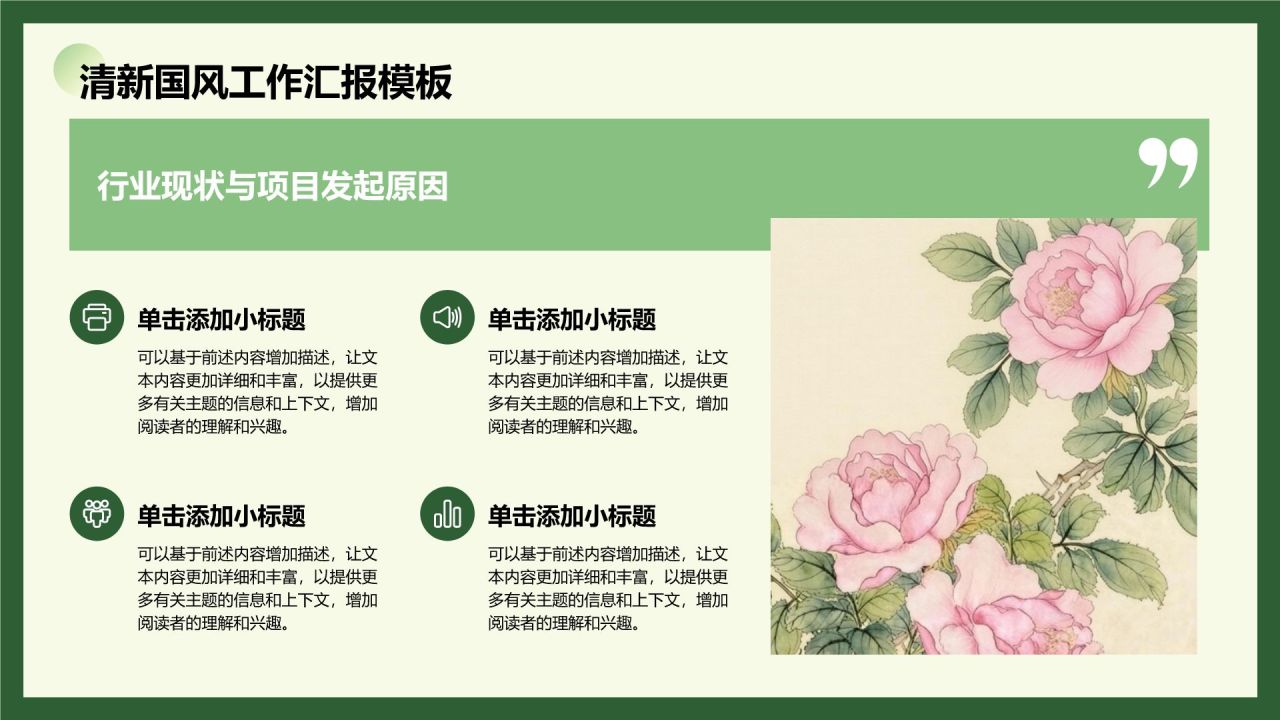 诗酒花茶,清新国风,职场汇报新风尚。以茶会友,以诗抒怀,展现职场办公人员的雅致生活。