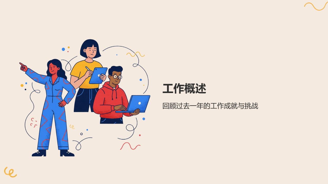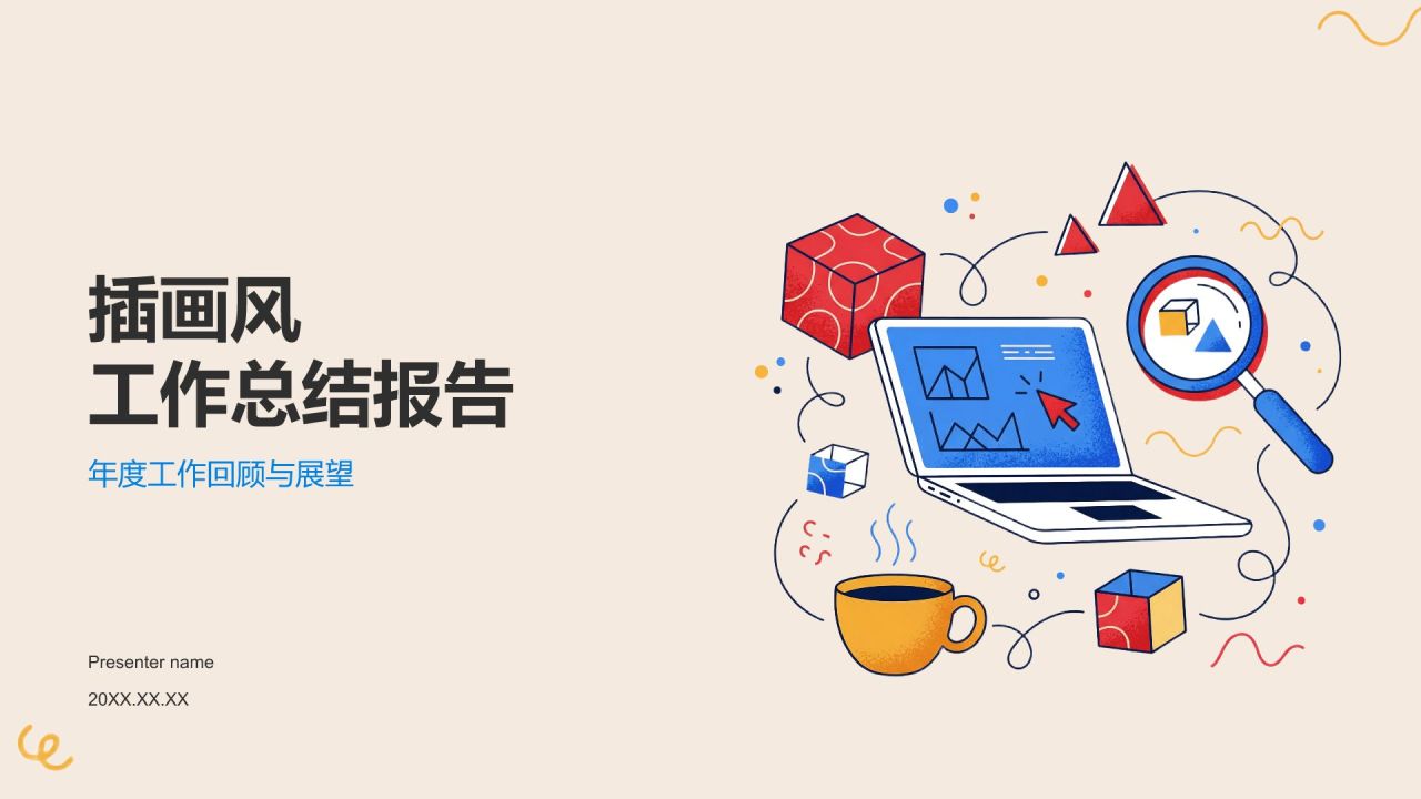 蓝色插画风工作总结PPT模板