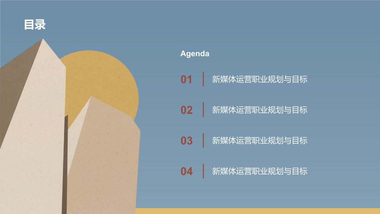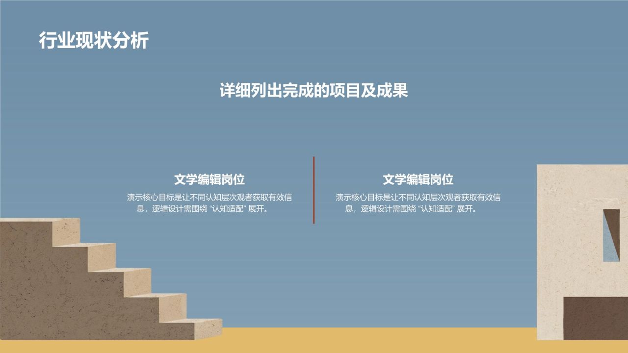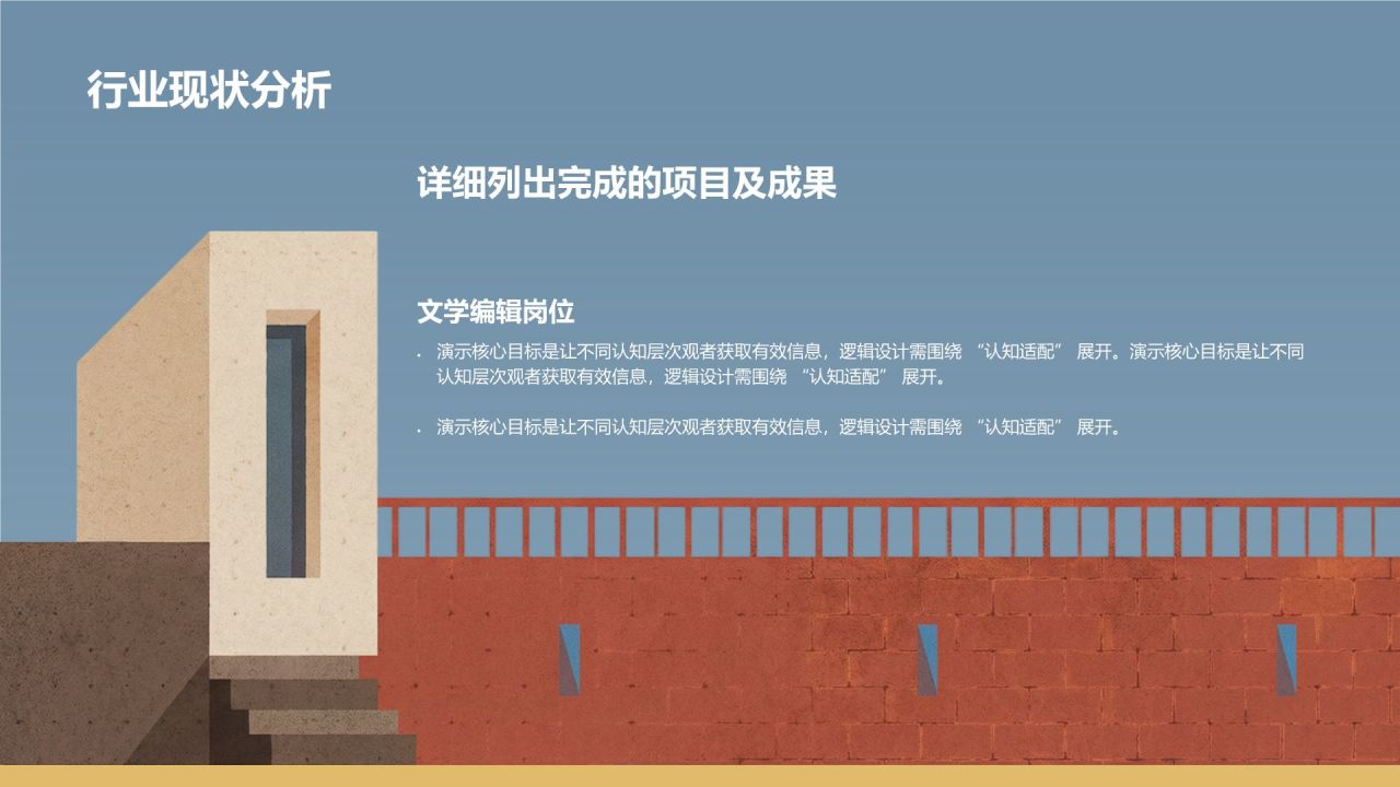 蓝色简约风极简几何拼接建筑创意PPT模板