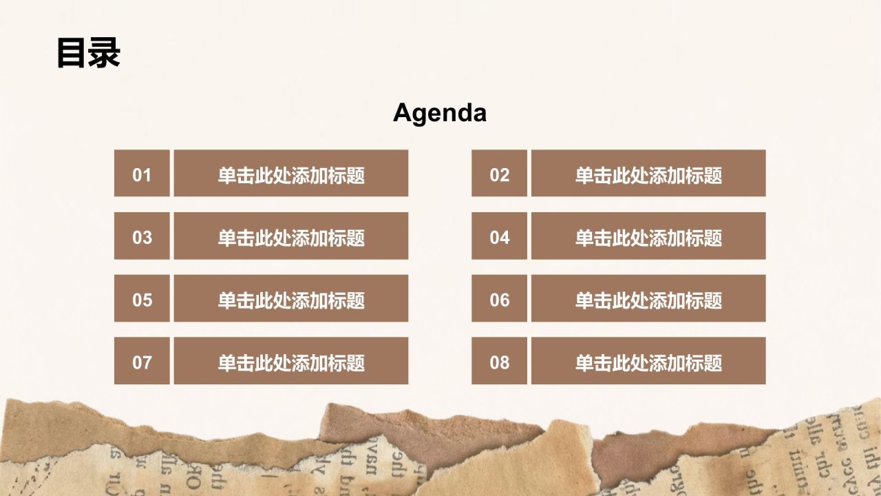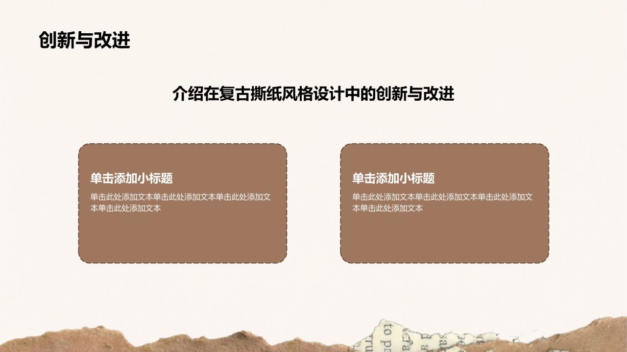棕色复古撕纸风小组项目汇报PPT模板