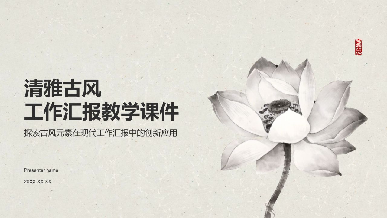 本课件以清雅古风为主题,旨在为通用行业总结汇报提供教学参考,展示古风元素在现代工作汇报中的应用,适合各类受众学习借鉴。
