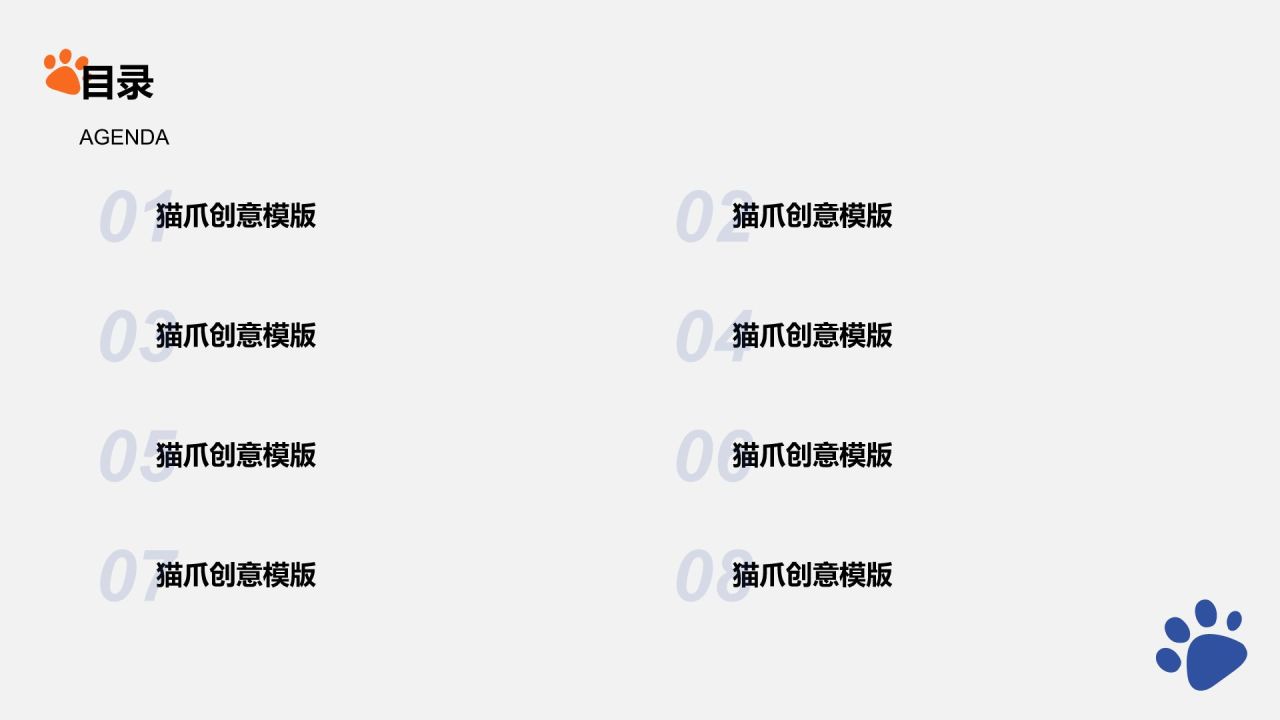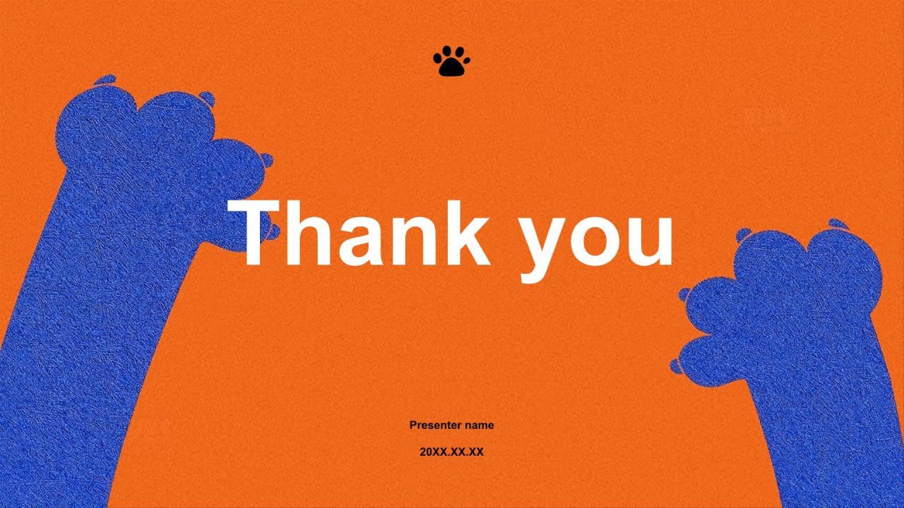 橙色卡通风猫爪创意PPT模板