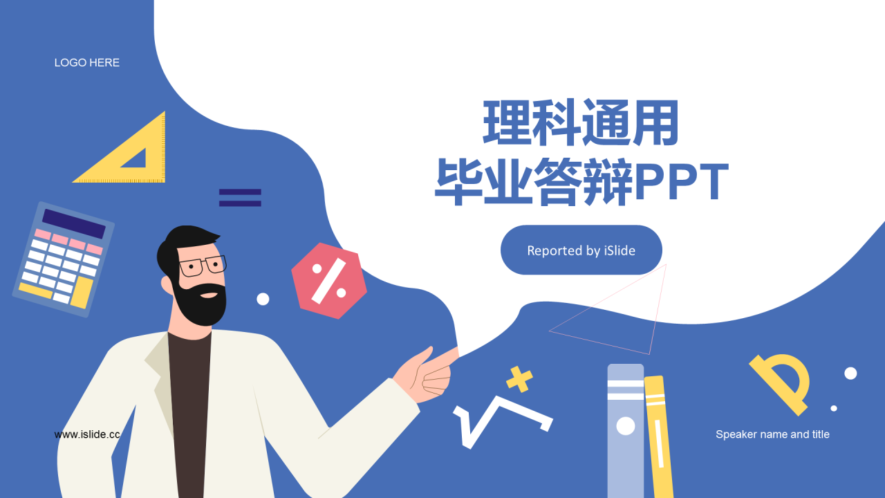 蓝色插画扁平理工通用毕业答辩PPT
